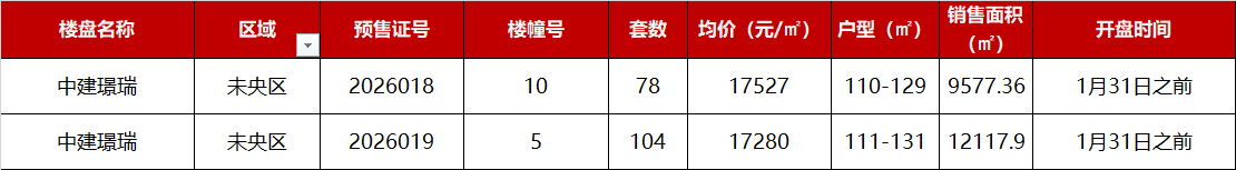 中建璟瑞2栋楼取证将销售住房均价17280元/㎡