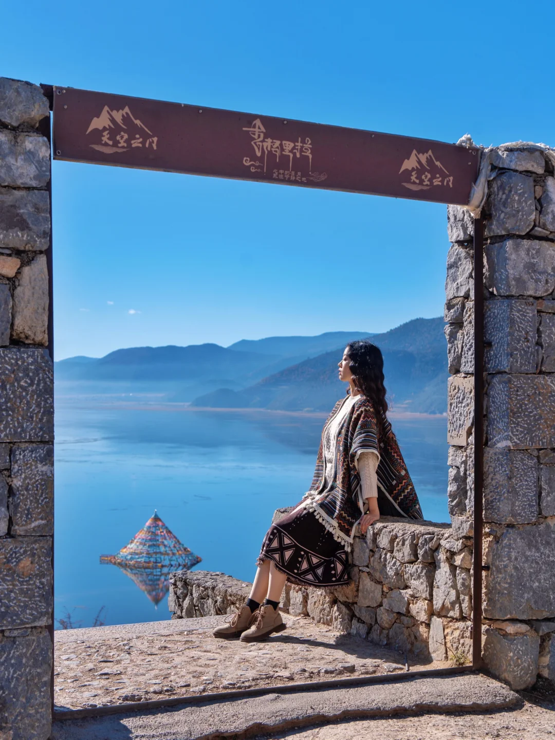 能俯拍整个纳帕海,还能看到水中的经幡飘动