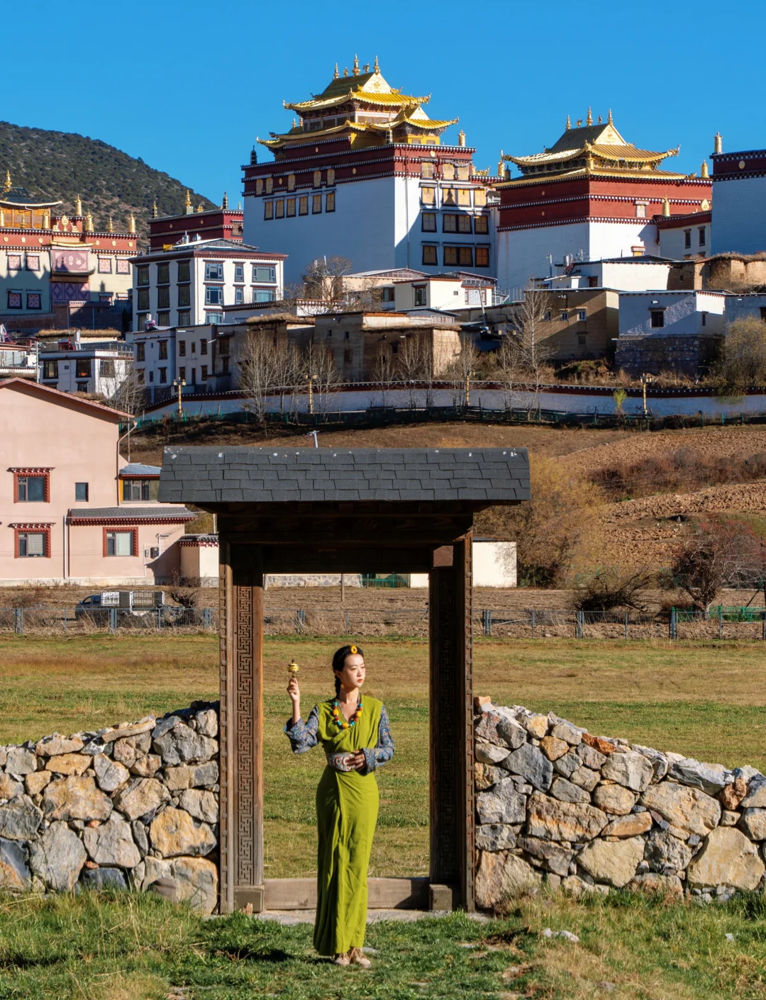 闪着金光的松赞林寺不能错过,自驾可以先去大门口买了纸质票之后直接自驾上,不用买35观光车的票
