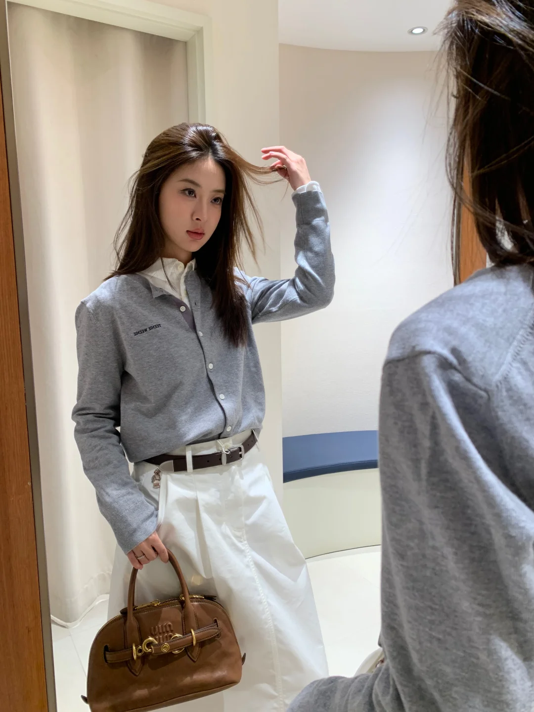 青衫立湖间沾着水汽的风掠过栏杆,她倚栏而站,浅蓝针织衫衬着舒展的姿态,恰似