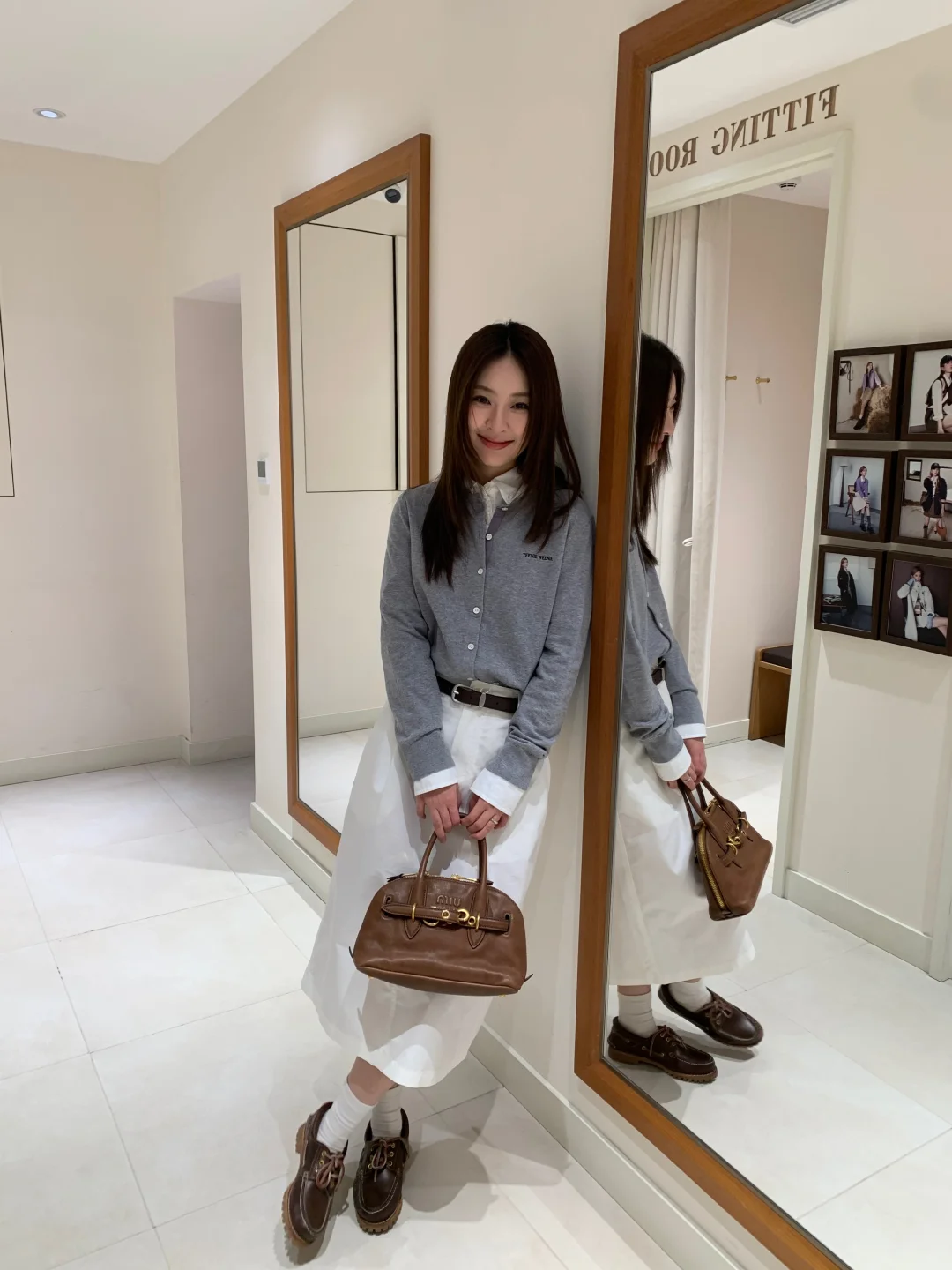 灰色高领毛衣+棕色包包,时尚又保暖!
