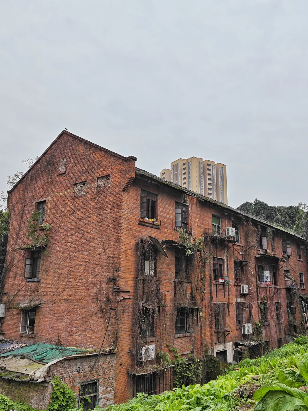 目前钢厂最老那栋家属楼周围都种上了各种菜,果然有荒坡的地方就有人种菜。去这里最好不要坐轻轨,我坐轻轨到刘家坝下车出来走了十多分钟,还经过了一条很长很狭窄,两边都是高墙的小路。要是坐公交车的话,从另一边走,就近得多。这面大片地方还是空置着的,开发也不会这么快。