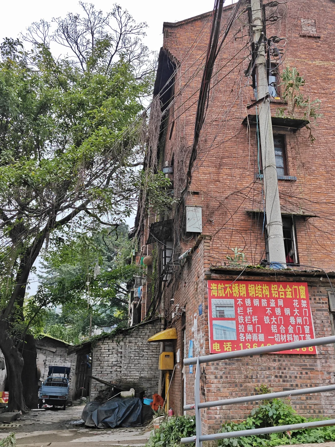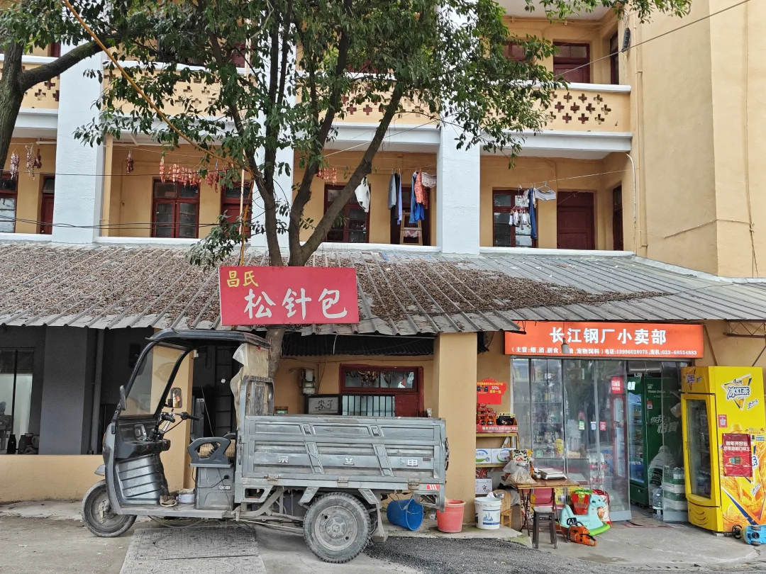 因此很多人以为大渡口就只有一家钢铁厂,其实也不完全是。在大渡口刘家坝的金属村,当年还有一家中型钢厂:长江钢厂。长江钢厂注册成立是在1990年代,现在已经注销(破产关停),但肯定在之前二十来年就存在了,原因很简单,他们的家属楼有一栋明显是1970年代的红砖+预制板四层筒子楼,他们的生产和办公车间也有几栋红砖老楼。这就意味着在长江钢厂注册成立之前这个钢厂就存在。因为我和这里的退休职工聊天时只听他们说这是一家中型国企,职工最多的时候上千人,新千年后破产,但我忘了问长江钢厂是什么时候成立的,前身是什么,所以只能通过家属楼外观来推断。可能在这之前,长江钢厂就是重钢下属的一个分厂,后来独立出来,当然这是我个人推断。因为网路上是没有相关确切信息的,我也没去档案馆查他们的资料。