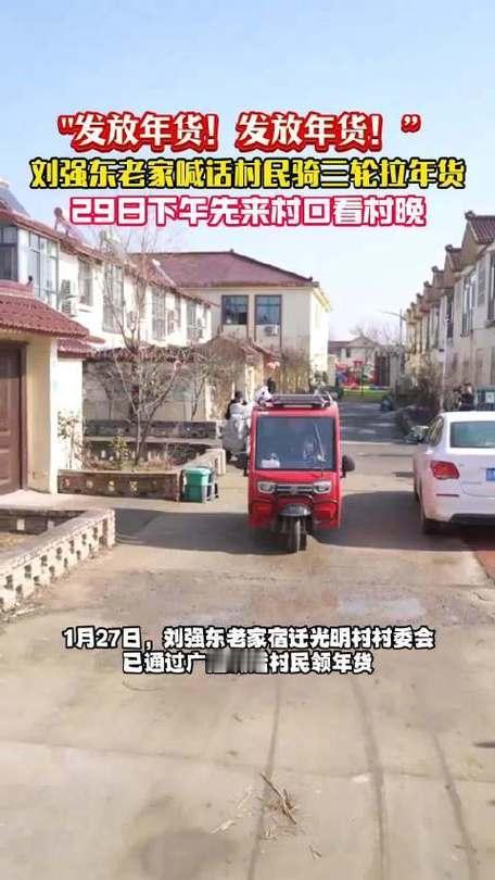 宿迁光明村村委会大喇叭循环喊话,通知乡亲1月29日上午10点领年货,提醒备好三轮车小推车,暖心又接地气。这是刘强东连续多年回馈家乡,今年备下超万件年货,含方言AI手机、米面油、血糖仪等实用好物,还将办村晚、建AI教室。当年全村凑钱送他上学,如今他年年反哺,温情暖了整个寒冬。村长广播通知 沭阳宣传条幅