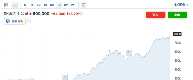 当日,SK海力士股价上涨8.7%。