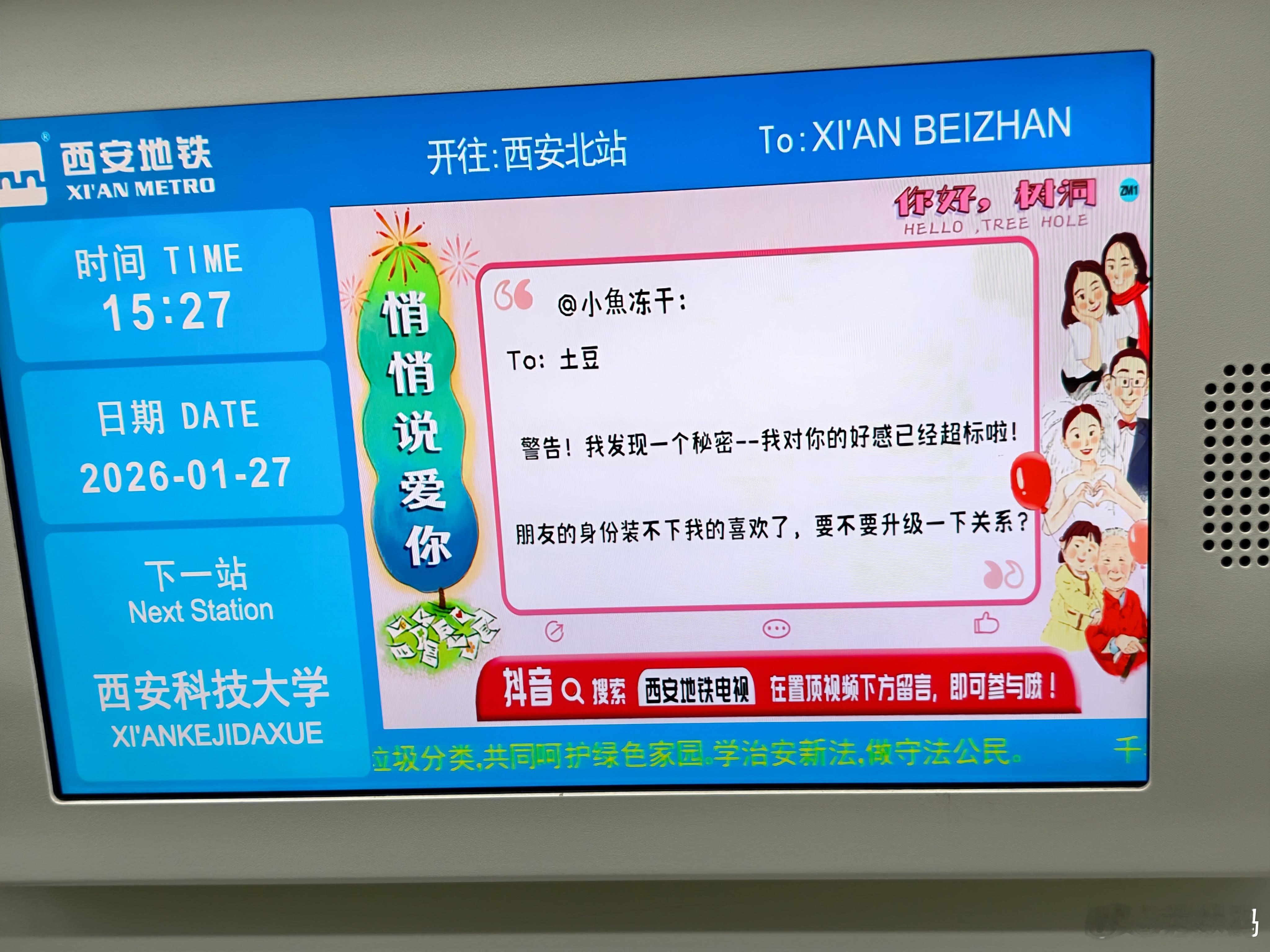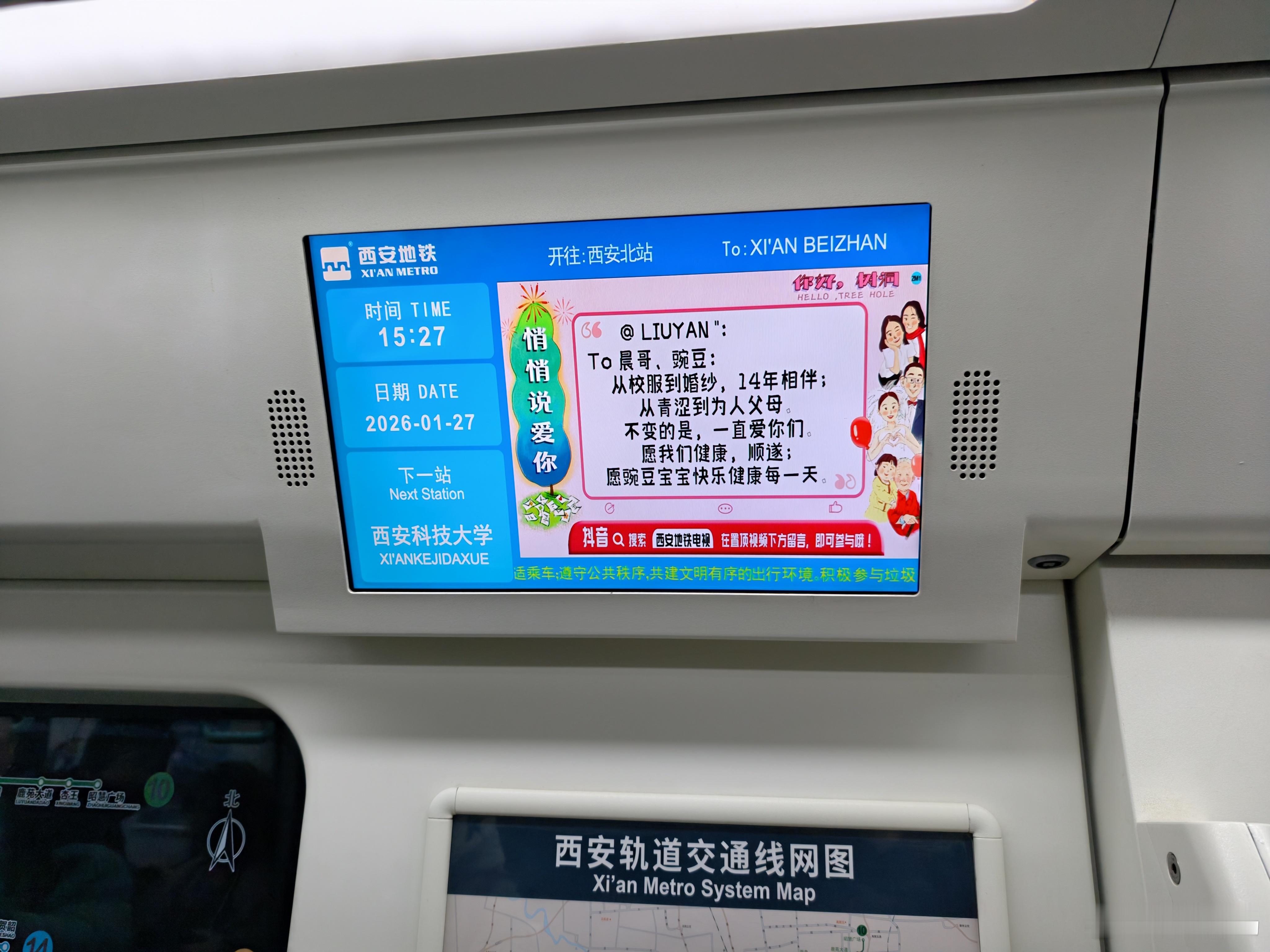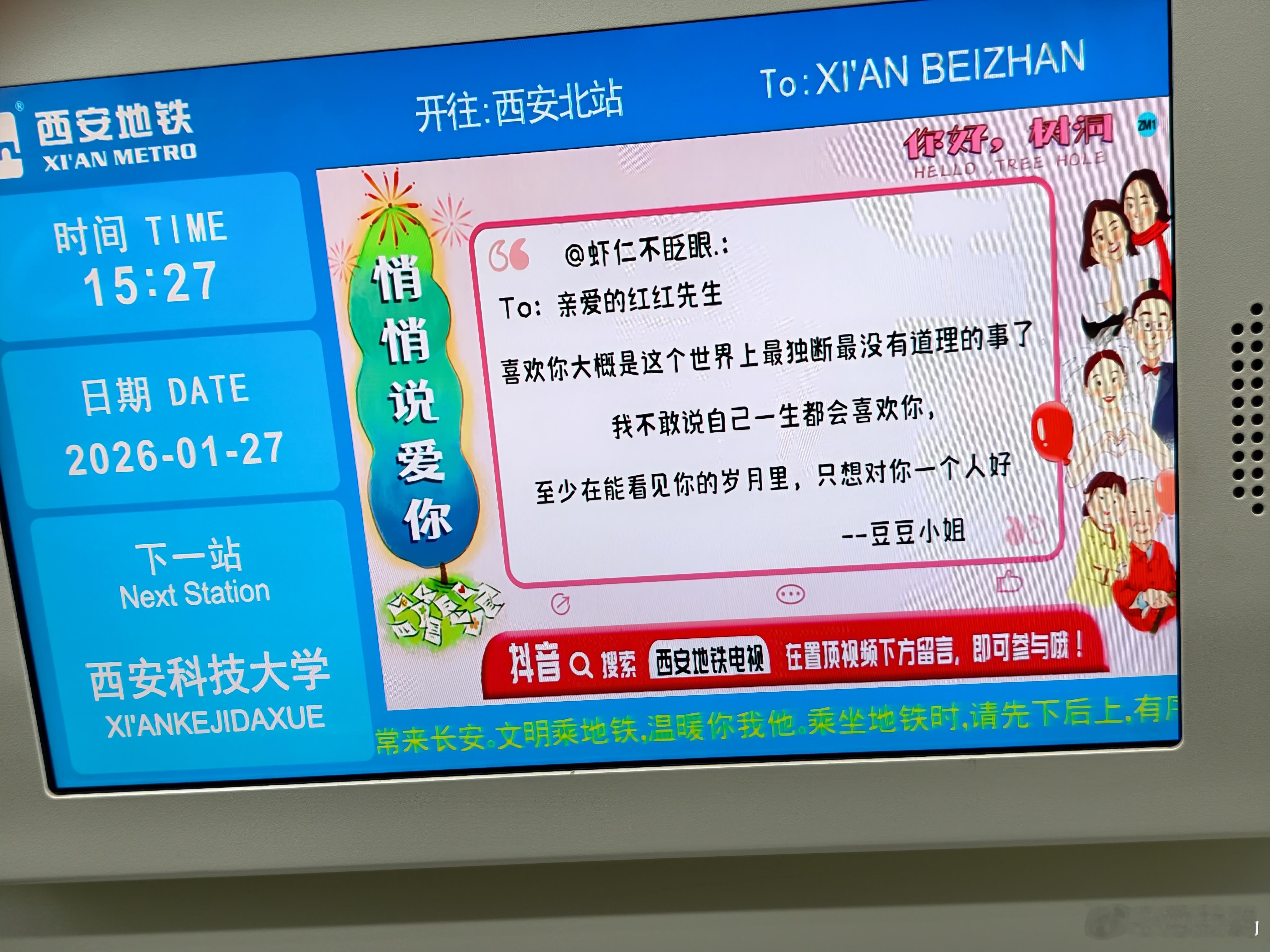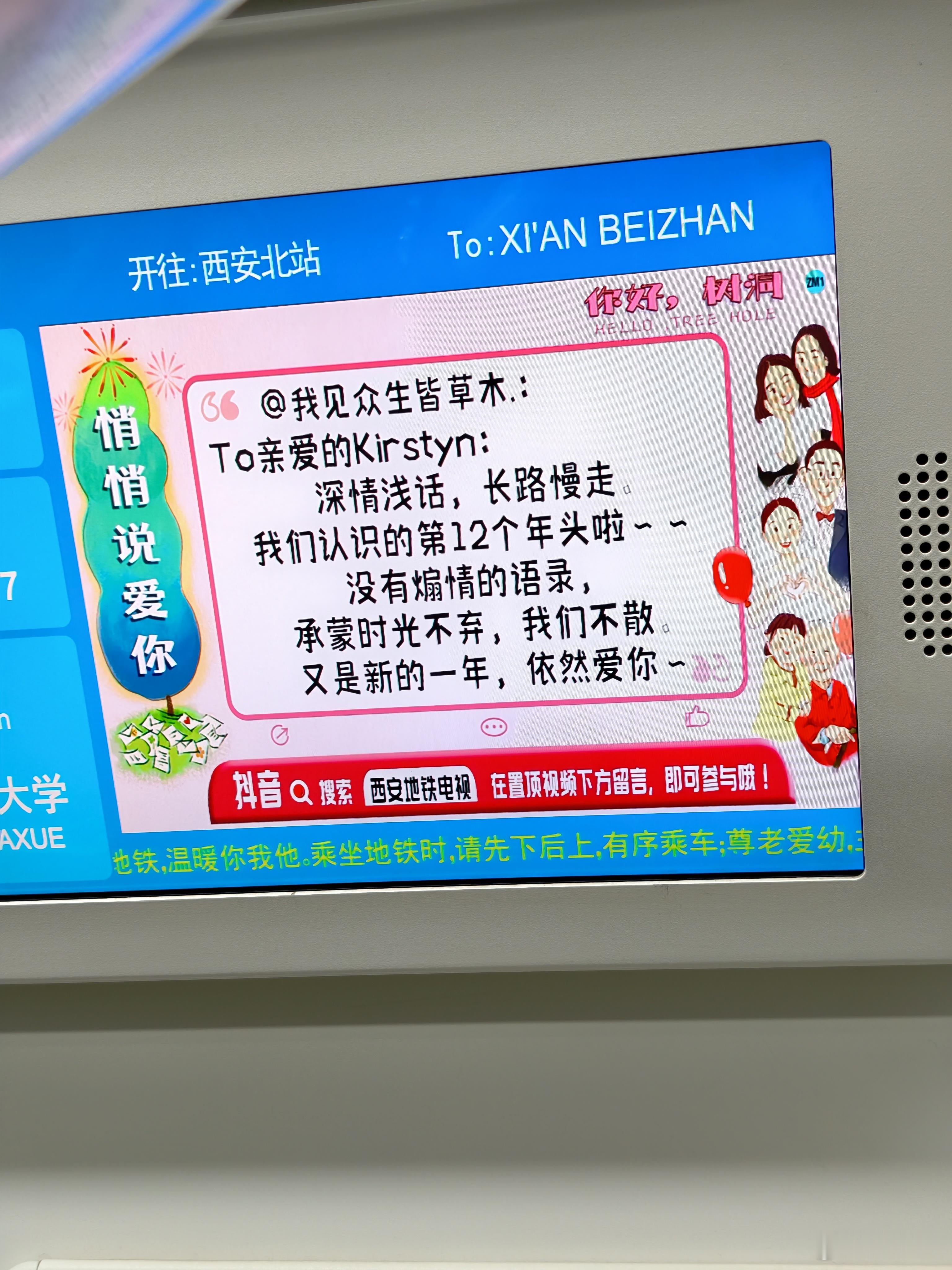 西安地铁里面这个表白墙真有爱,不知道对方能不能看得到,太暖了。