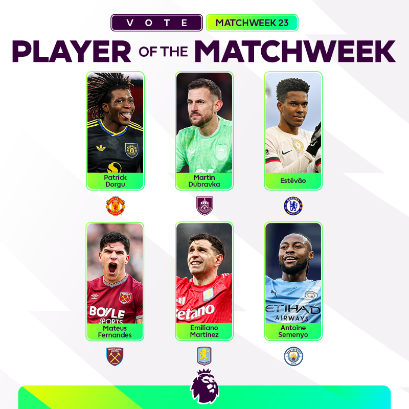 虎扑01月27日讯英超第23轮比赛结束,英超官方也评选出本轮最佳球员候选名单,具体如下: