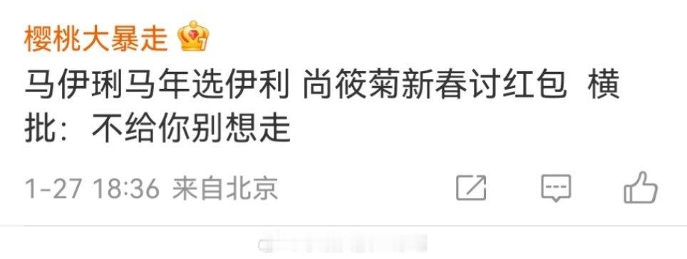 以前总觉得对春联是老派仪式,直到跟着伊利马伊琍马年选伊利,试凑了次热闹,才发现这玩意儿藏着好多小乐趣!看烧饼“朱云峰祝您攀云峰”,才懂把名字藏进对联里的巧思——既讨了“攀高”的好彩头,又自带亲切感;尚筱菊“尚筱菊上联对此句”看似直白,却带着相声人特有的松弛感,像极了朋友间的互动。原来春联不只是文字游戏,更是把心意揉进平仄里的浪漫~马年春联卷到乐子人了 你也试试,说不定能解锁自己的专属下联!