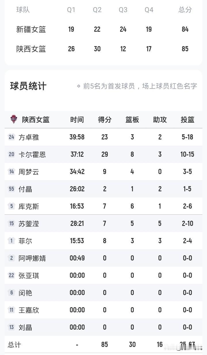 武桐桐16+5+8 赵爽11+ 王雪朦10+ 新疆女篮1分惜败陕西女篮