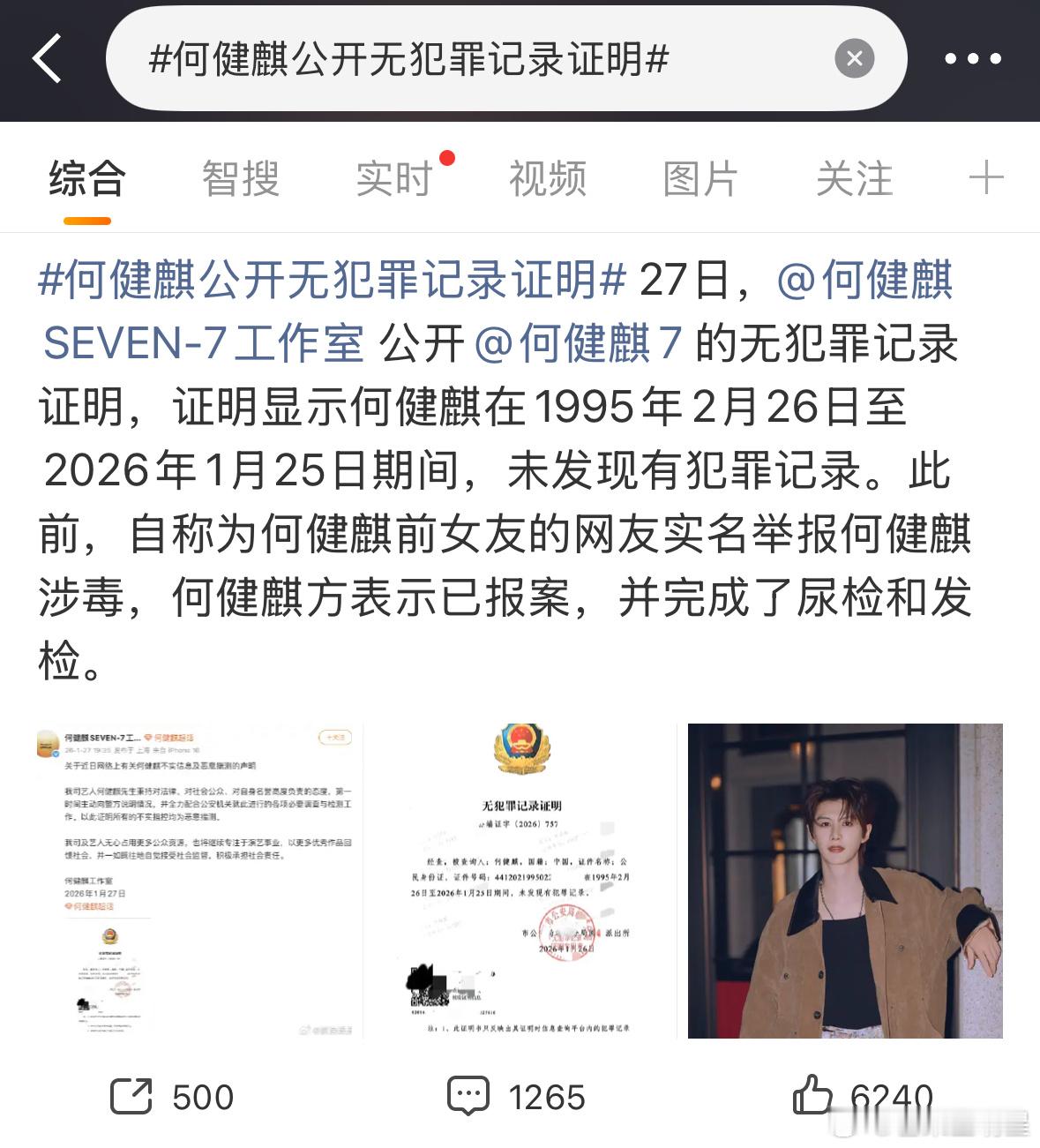 何健麒公开无犯罪记录证明不会真如网友所说的是在炒作吧,又一个以身入局的