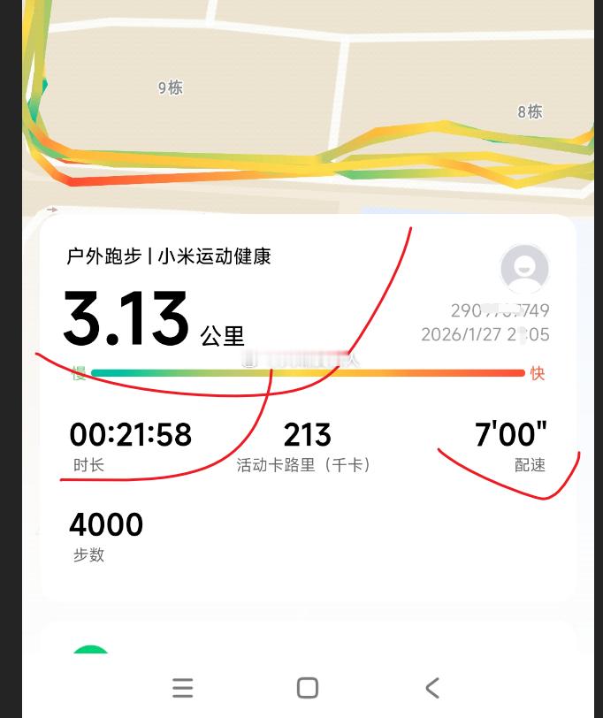 跑步继续因为前段时间天气降雪等原因,有两周时间没慢跑了,今晚继续,收拾停当,准备跑步,还没出楼门呢,就被一只不拴绳的小狗嗖的一声从脚边跑过,吓了一跳。热身后,用时22分钟,慢跑3公里,配速7分钟,身体感觉还能跑,只是心理疲倦了,遂收工感觉风力有二三级,国旗微微吹展,气温零上三度,跑了一公里,脚上才有了点热乎气。减肥,瘦身,河南陕西山西局地暴雪