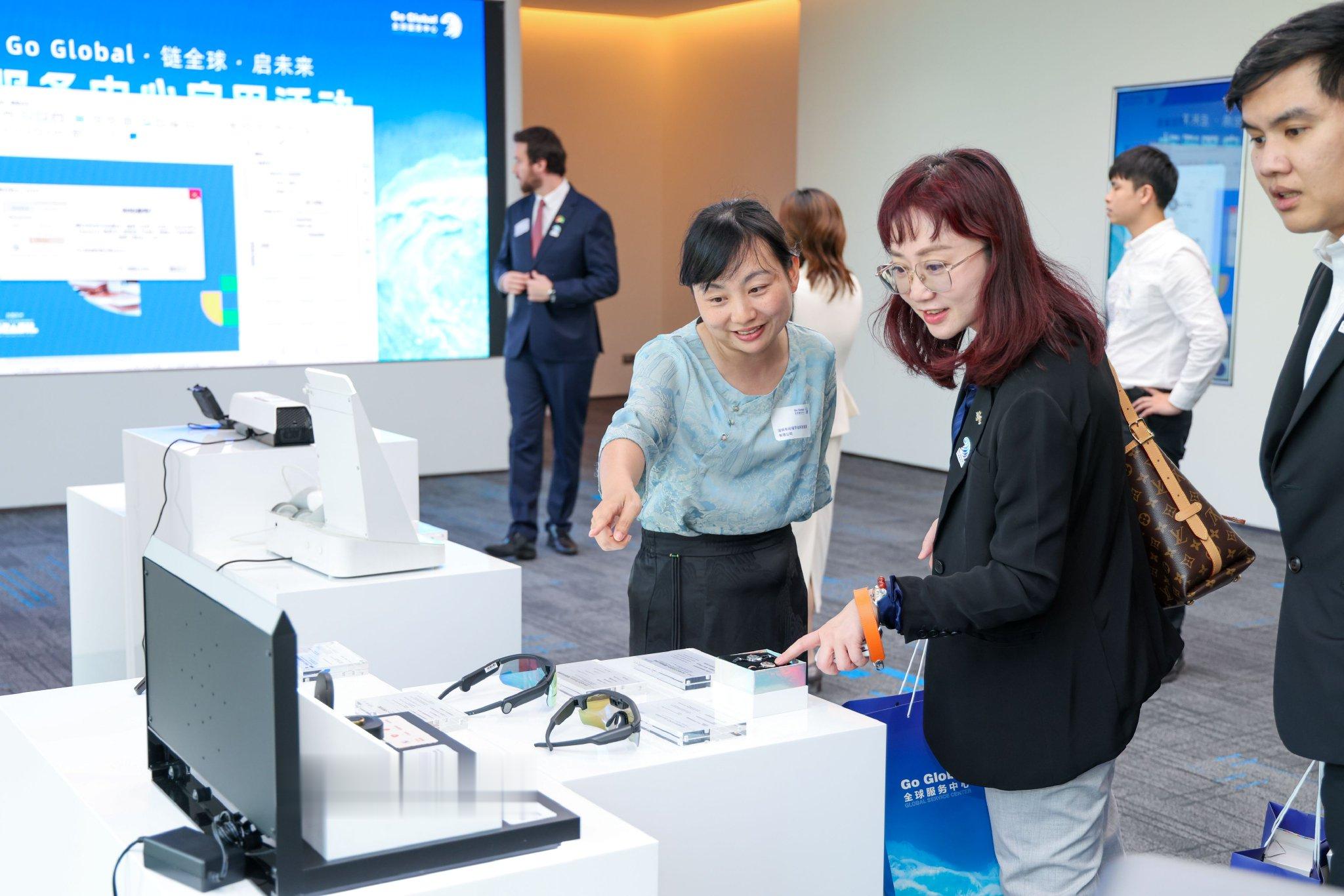 2025年4月29日,来访者在全球服务中心企业产品展示区域参观。新华社记者毛思倩摄