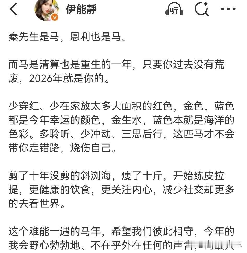 伊能静瘦了十斤过马年,她说马年是清算年也是重生年,少穿红色,金色蓝色是幸运色。 昨天我和老公差点买了红色的转运手链,现在知道了马年还是要低调,多聆听少冲动三思而后行。 不得不说奔六的伊能静看起来太年轻了,她太会保养了,一年光保养脸都要花七位数,斜刘海捡了,瘦身十斤做普拉提,都是向内求,难怪能驾驭姐弟恋,太自律了!