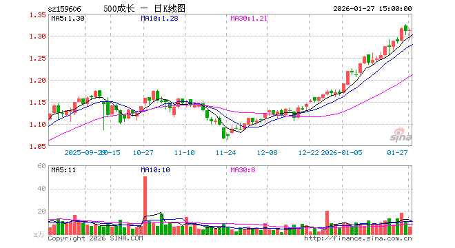 1月27日,中证500成长ETF易方达(159606)涨0.15%,成交额820.04万元。当日份额减少100.00万份,最新份额为3.21亿份,近20个交易日份额增加1800.00万份。最新资产净值计算值为4.21亿元。