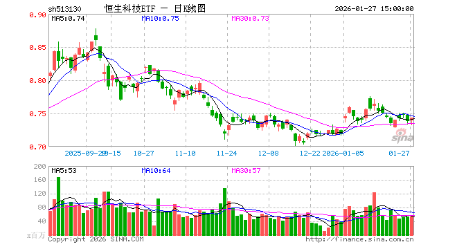 1月27日,恒生科技ETF(513130)涨0.68%,成交额40.15亿元。当日份额增加800.00万份,最新份额为633.46亿份,近20个交易日份额增加38.99亿份。最新资产净值计算值为472.18亿元。