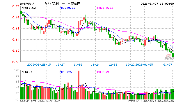 1月27日,食品饮料ETF(159843)跌1.14%,成交额2071.12万元。当日份额增加1500.00万份,最新份额为7.62亿份,近20个交易日份额增加6900.00万份。最新资产净值计算值为4.62亿元。