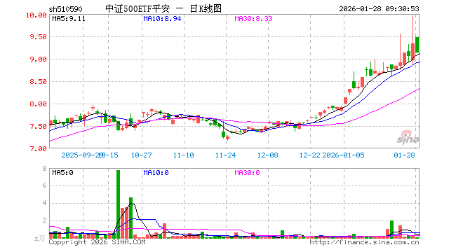 中证500ETF平安(510590)业绩比较基准为中证500指数收益率,管理人为平安基金管理有限公司,基金经理为李严,成立(2018-03-23)以来回报为70.21%,近一个月回报为14.74%。