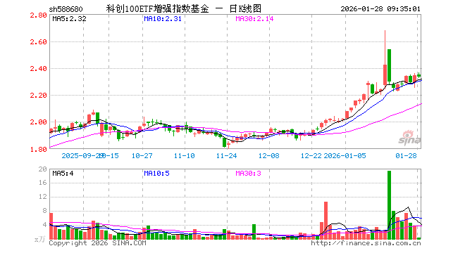 科创100ETF增强指数基金(588680)业绩比较基准为同期上证科创板100指数收益率,管理人为广发基金管理有限公司,基金经理为李育鑫,成立(2024-06-27)以来回报为134.47%,近一个月回报为16.56%。