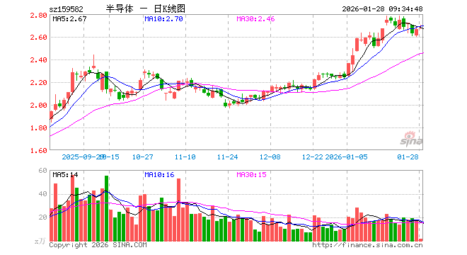 1月28日,半导体产业ETF(159582)开盘涨0.11%,报2.671元。半导体产业ETF(159582)重仓股方面,中微公司开盘涨2.50%,北方华创涨0.95%,寒武纪涨0.69%,中芯国际涨0.76%,海光信息涨2.05%,拓荆科技涨1.01%,长川科技涨0.42%,华海清科涨0.92%,中科飞测涨0.00%,南大光电涨0.07%。