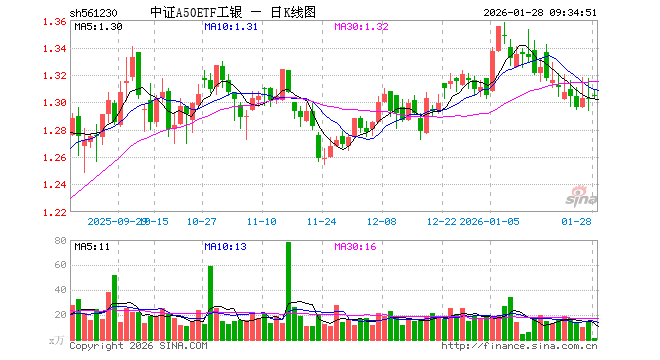 1月28日,中证A50ETF工银(561230)开盘涨0.23%,报1.305元。中证A50ETF工银(561230)重仓股方面,宁德时代开盘跌0.45%,贵州茅台涨0.00%,中国平安涨0.86%,中际旭创涨2.66%,紫金矿业涨1.95%,招商银行涨0.05%,美的集团跌0.01%,长江电力涨0.00%,立讯精密跌0.04%,中信证券涨0.11%。