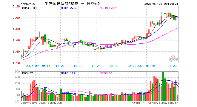 1月28日,半导体设备ETF华夏(562590)开盘涨0.00%,报2.005元。半导体设备ETF华夏(562590)重仓股方面,北方华创开盘涨0.95%,中微公司涨2.50%,拓荆科技涨1.01%,长川科技涨0.42%,沪硅产业涨0.63%,华海清科涨0.92%,中科飞测涨0.00%,南大光电涨0.07%,安集科技涨0.88%,芯源微跌0.00%。