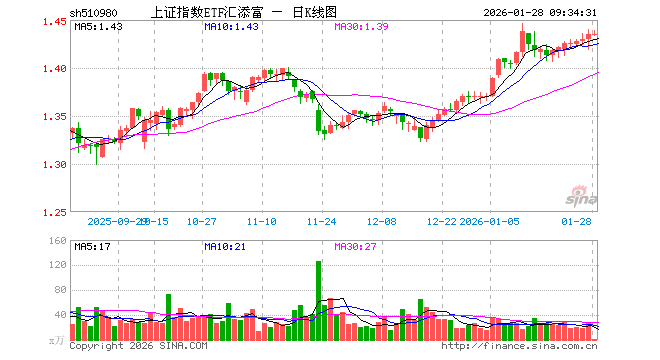 1月28日,上证指数ETF汇添富(510980)开盘跌0.07%,报1.434元。上证指数ETF汇添富(510980)重仓股方面,农业银行开盘跌0.58%,中国银行跌0.19%,中国石油涨1.53%,贵州茅台涨0.00%,工业富联涨2.18%,中国人寿跌0.16%,招商银行涨0.05%,中国平安涨0.86%,中国神华涨0.37%,紫金矿业涨1.95%。