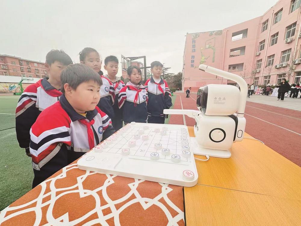 为激发学生的创新思维与对传统文化的热爱,近日,邯山区育德路小学举办了一场别开生面的“人机象棋对弈”活动。操场上,一台智能象棋机器人吸引了众多学生围观,学生屏息凝神,谨慎落子,机器人则通过机械臂精准回应,每一步棋都引得周围同学发出阵阵惊叹。此次活动将传统象棋与现代AI技术相结合,不仅让孩子们在趣味对弈中提升了棋艺,更直观地感受到人工智能的魅力。班玲