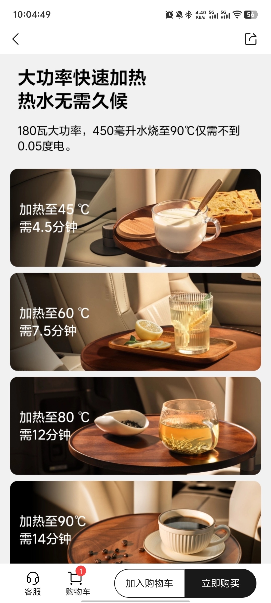 点烟器热水壶,感觉如何?冬天能够喝上热水很重要,5分钟以内就能喝上温水,这种感觉很不错。商城已上线。 相比原来即热饮水机的优点:便宜了200的价格。269元 vs 469元。相比原来即热饮水机的优点:没法做到即热,需要等待几分钟才可以热水。