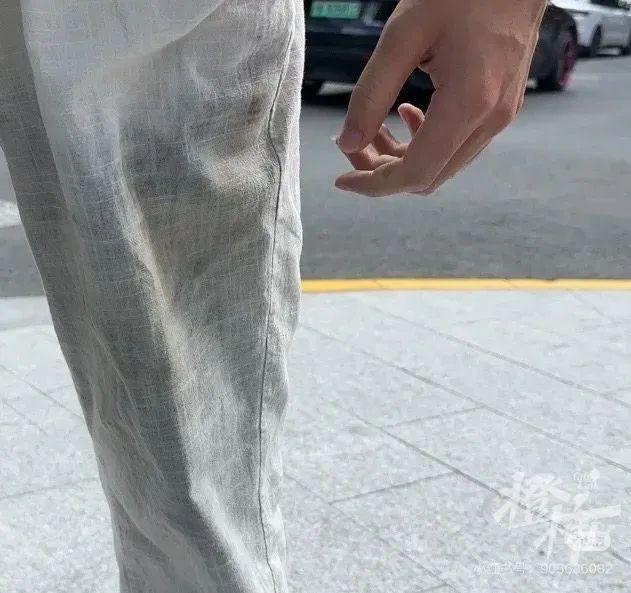 “我们路过黄浦区淮海中路k11购物艺术中心门口,我看到黑烟从面前飘过,然后看到他(小李)的裤子烧起来了。消防员很快赶来了,喷了灭火器,浇了两大盆水,充电宝还是在不断冒烟。我赶紧先带我朋友去医院了,这个充电宝的燃烧过程至少有七分钟。”