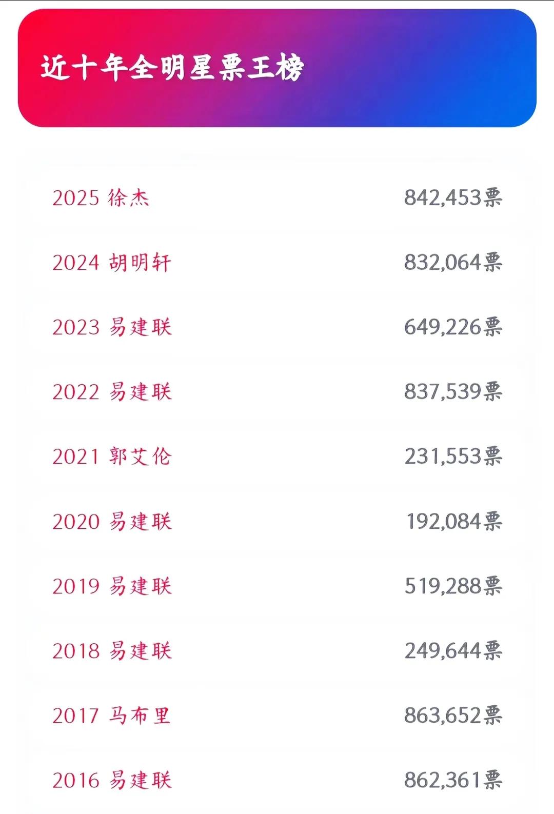 浅释徐杰蝉联全明星票王。 看徐杰发视频说,去年的惊喜今年是责任,感谢球迷一直的支持。 说得好,说明徐杰更成熟更有担当,更知道自己在球队的作用。 徐杰为什么能破历史票数的票王,原因主要在于他的身高,如果他是1.9米左右,数据跟现在一样,在广东队投票得首发还是有的,得票王应该就没有了,点解? 观众球迷一般都有思维落差感,徐杰的身高能立足CBA,本身就是励志人物,还能当球队核心,更说明他的付出得比其他球员多好几倍,真正的球迷就是喜欢能艰苦修为的球员。徐杰的球迷群体能包括老中青小,老球迷会参考自己的儿孙辈,看看人家不一般啊,中年球迷更会欣赏他的球技,青年球迷会以他为榜样,小球迷会有亲切感,会欢叫小哥哥很棒。当然了,还会有很多女球迷喜欢他的气质,帅气。还有主要是在广东队,要知道广东球迷覆盖全国。 根据官方数据,中国人平均身高,18-44岁成年男性的平均身高为169.7厘米,女性平均身高为158.0厘米。 一般打篮球的都是高个巨人,属特别的,徐杰身高就趋于正常人了,所以人们就更偏爱些。 徐杰今年也才26岁,再打十几年都没问题,不比大高个容易劳损,所以再接再厉,再得十个票王创造历史之最,追赶前辈易建联。
