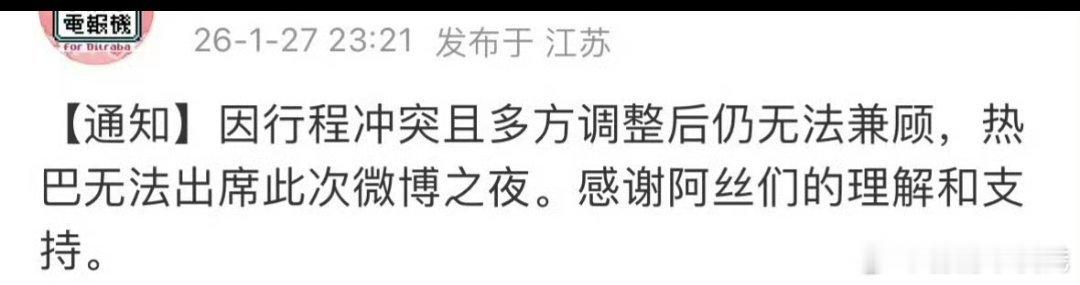 迪丽热巴缺席微博之夜。行程冲突无法调整。88不去,少了一个大看点啊
