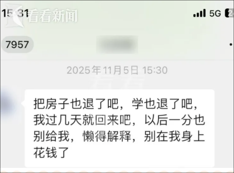 警惕的全女士顿时心生疑虑:儿子不会遭遇情感诈骗了吧?于是,她拒绝了出资请求。不料这一决定竟激起儿子的强烈反应,他不仅扬言“不用你的钱,我自己打工还债”,更表示将提交退学申请,准备回国工作为女友还债。
