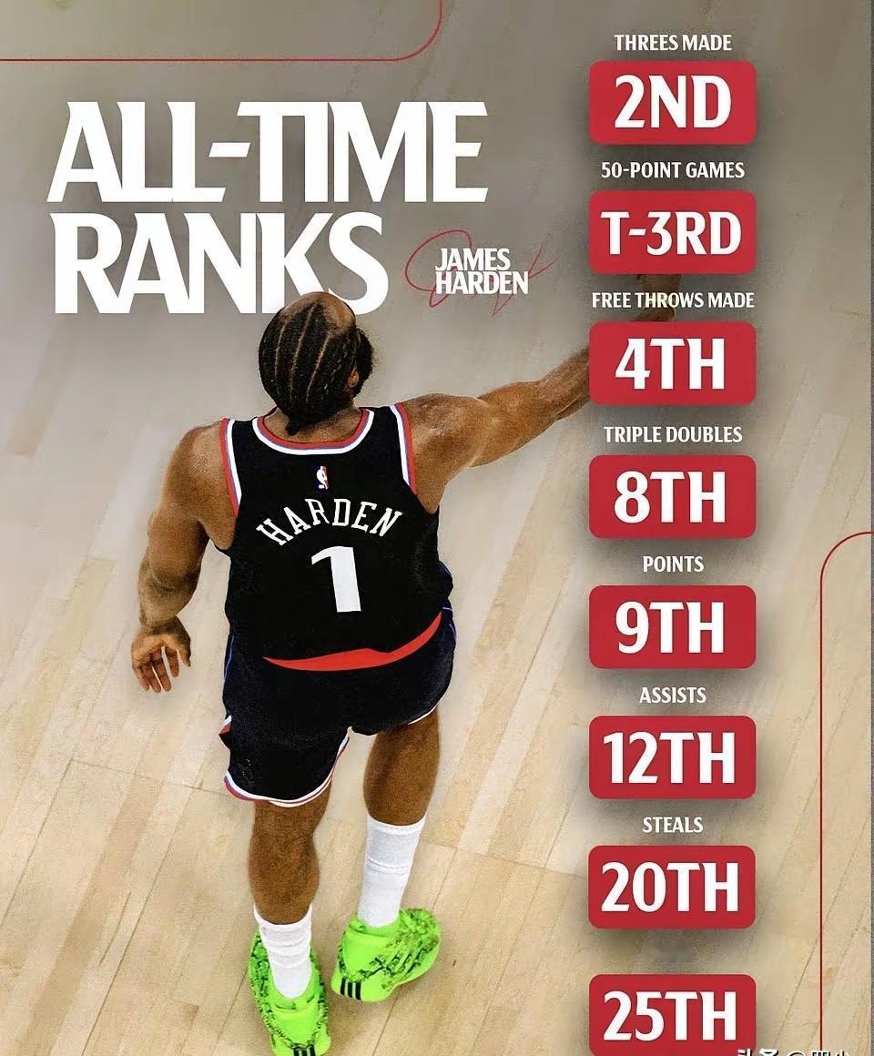 只差1个篮板,哈登推开历史大门的动作,停在了半空中。 赛前,所有人的剧本都写好了:哈登只要再抓下7个篮板,就能把迈克尔·乔丹甩在身后。 篮球之神,历史性的跨越,就在今夜。 整个球馆的空气都凝固着,等待那个数字跳动。 结果呢? 一场37分的大胜,队友笑开了花,哈登的数据单停在:6个篮板。 他的生涯总数定格在6672,不多不少,正好追平乔丹。 一步之遥,从超越传奇,变成了与传奇并肩。 赢球的狂喜,掩不住那一丝个人纪录的遗憾。 那一刻你才明白,竞技体育最残酷的,不是惨败,而是功亏一篑。 最折磨人的,不是遥不可及,而是只差毫厘。