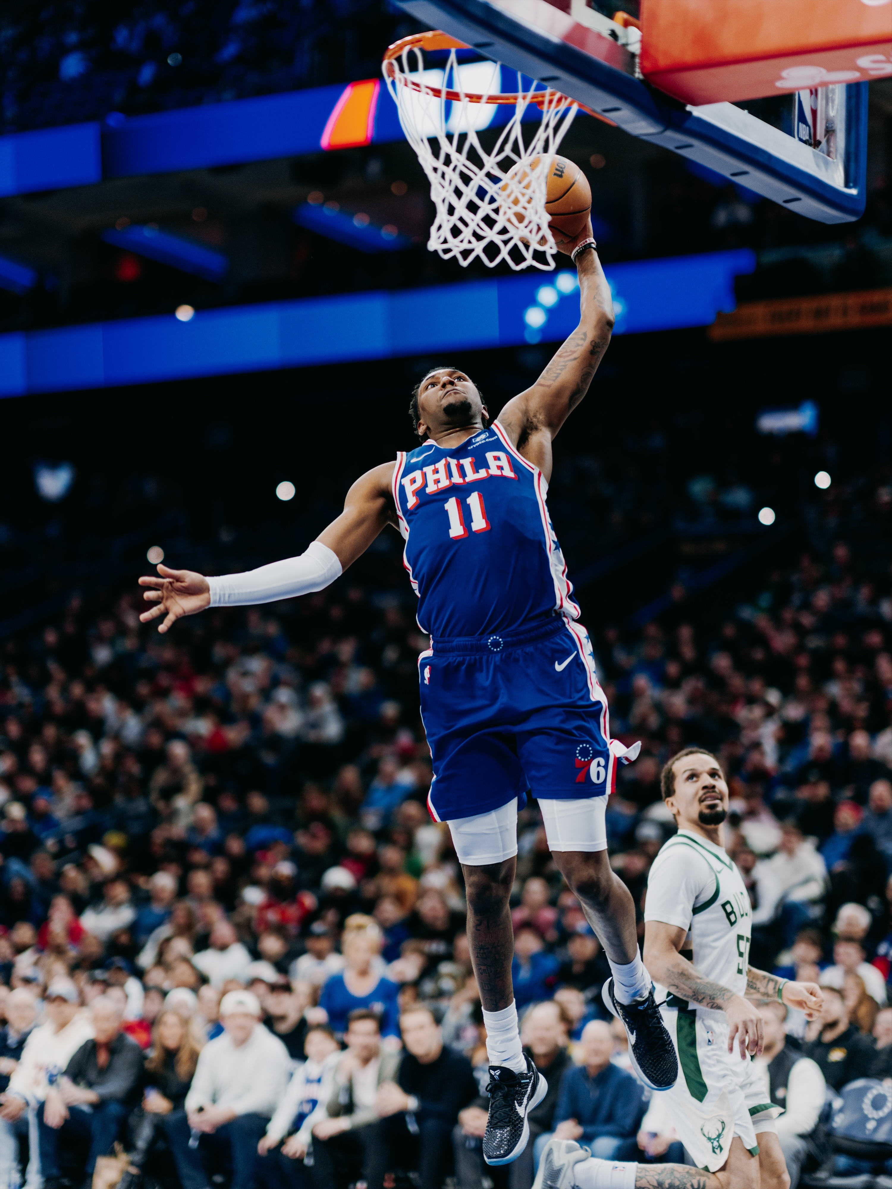 赛事图集!分享一组76人队今日对阵雄鹿队比赛时拍摄的球员现场酷图!费城76人76