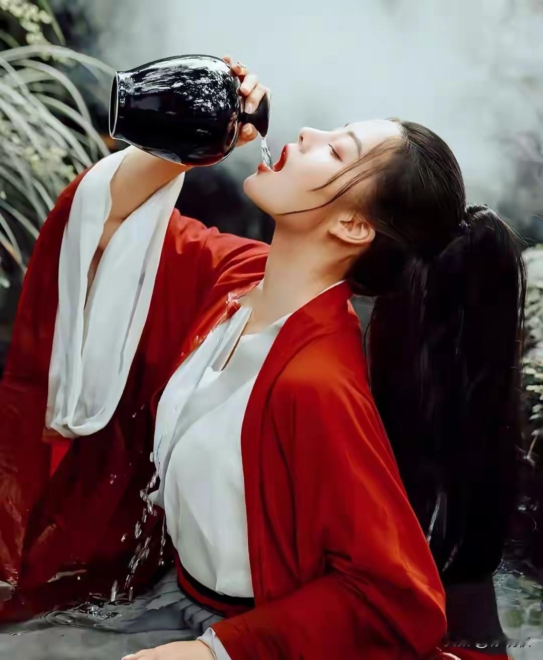 美图欣赏,看图写诗,情感解读《廊下晴光》七言绝句:素衣凝露倚朱廊,长