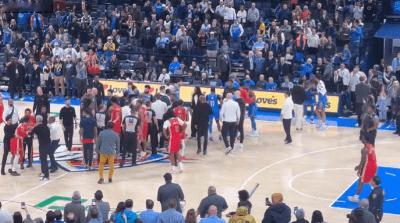众生相!今天上午结束的一场NBA常规赛中,雷霆队主场104-95击败鹈鹕队。比赛最后时刻,鹈鹕球员费尔斯在上篮时与雷霆球员多特发生身体碰撞引发矛盾,终场哨声响起后,两人爆发激烈冲突,互相揪住对方球衣撕打,引发双方教练、球员和工作人员大批介入拉架,场面一片混乱。在被分开后,费尔斯还尝试继续冲向多特,最终被普尔拦住未能如愿,但作为这次冲突中的主角,费尔斯和多特必然会遭到NBA官方的处罚。 在混乱的场面中,有人却保持着置身事外的冷静:当队友都在奋力阻拦老人时,鹈鹕队的替补中锋小乔丹主动找到亚历山大进行了愉快交流,两人甚至还拉着手,体现出深厚的友谊。而另一边,输球后的鹈鹕主力锡安心情不好,低着头从人群边径直走回更衣室。面对同样的环境,各人截然不同的表现,证明人类的悲喜并不相通。雷霆鹈鹕赛后发生冲突 雷霆