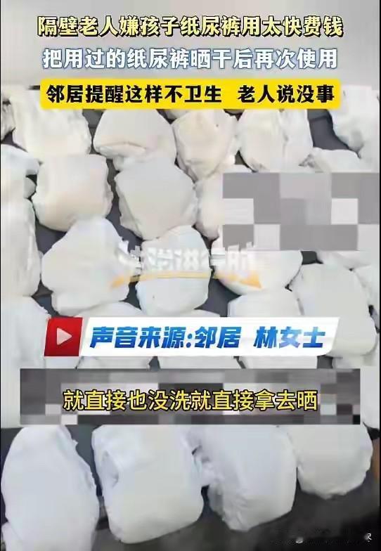 这到底是因为穷呢,还是因为太懒呢?福建这位老人带孩子的方式,可真是不能让人理解了,就因为老人嫌纸尿裤消耗快,花钱多,竟然将用过的纸尿裤直接晒干后,继续给仅两周的孙女再次使用! 实在搞不懂这位老人是怎么想的,这要是孩子进一次医院的话,估计花掉的可不止一年的纸尿裤钱吧,既然老人嫌买纸尿裤花钱太多,可以自己做一些尿布啊,就算想节省钱的话,那么孩子用过的纸尿裤,也要洗干净再继续给孩子用吧,这孩子用过的纸尿裤连洗都不洗,只能说这老人也真是太懒了吧? 把孩子交给这种既怕花钱,又很懒的老人带着,真不知道这孩子的父母,难道就一点也不心疼吗?