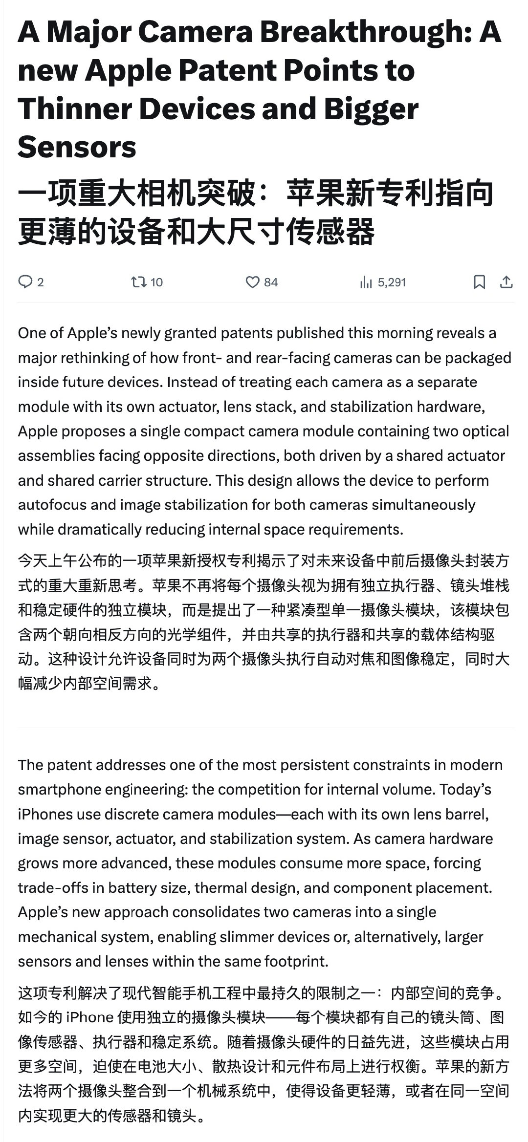 苹果摄像头硬件新专利。by PatentlyApple想象一下,今年的 iPhone 凸台设计,亦或是超薄单摄像头的 iPhone Air 可能仅仅只是个开始而已~