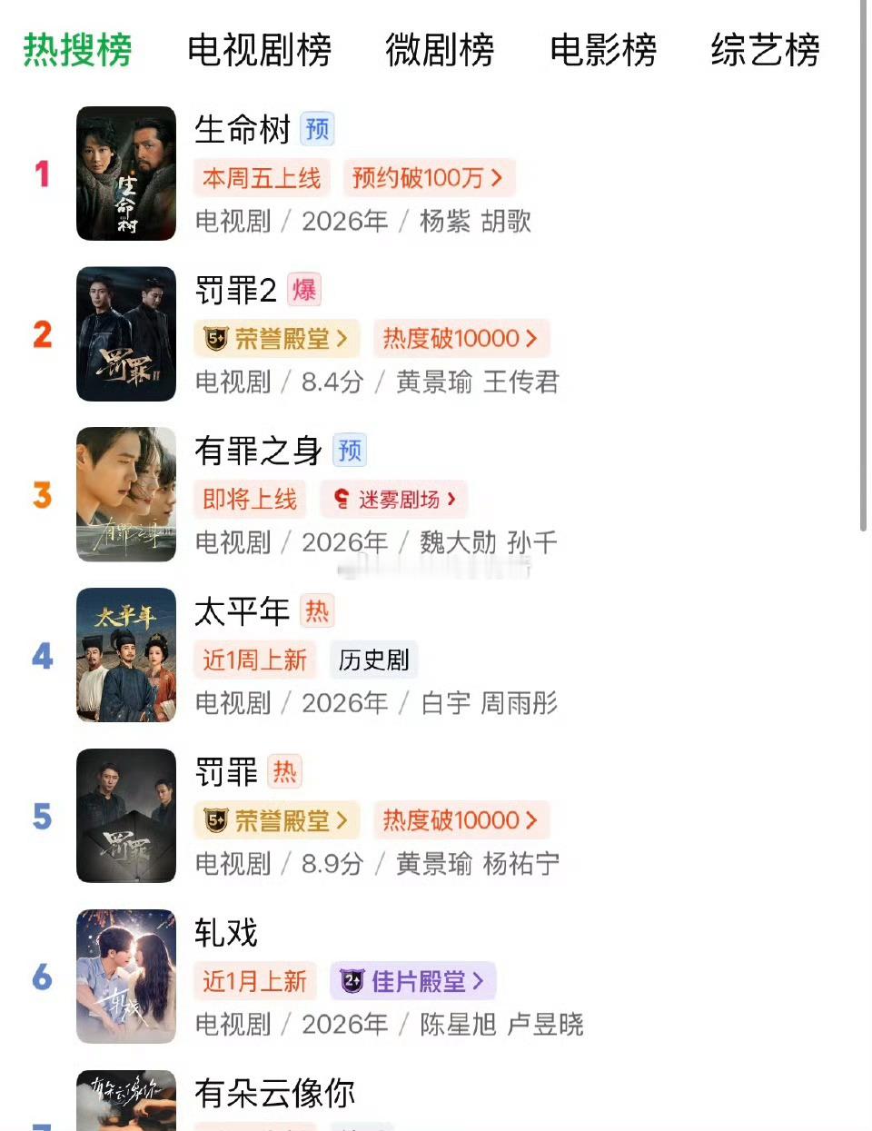 生命树今日就爱奇艺站内热搜榜和电视剧榜登顶,抖影视榜也登顶了
