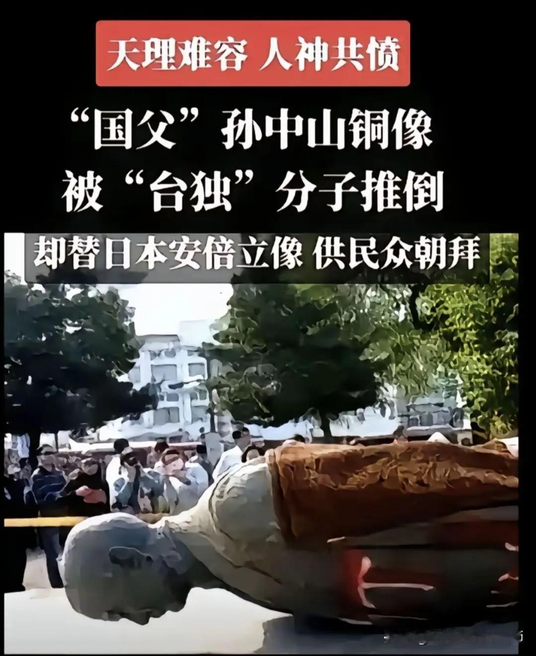 二战中,日本兵推倒孙中山铜像!现在,在岛内,孙中山铜像也被频频推倒!