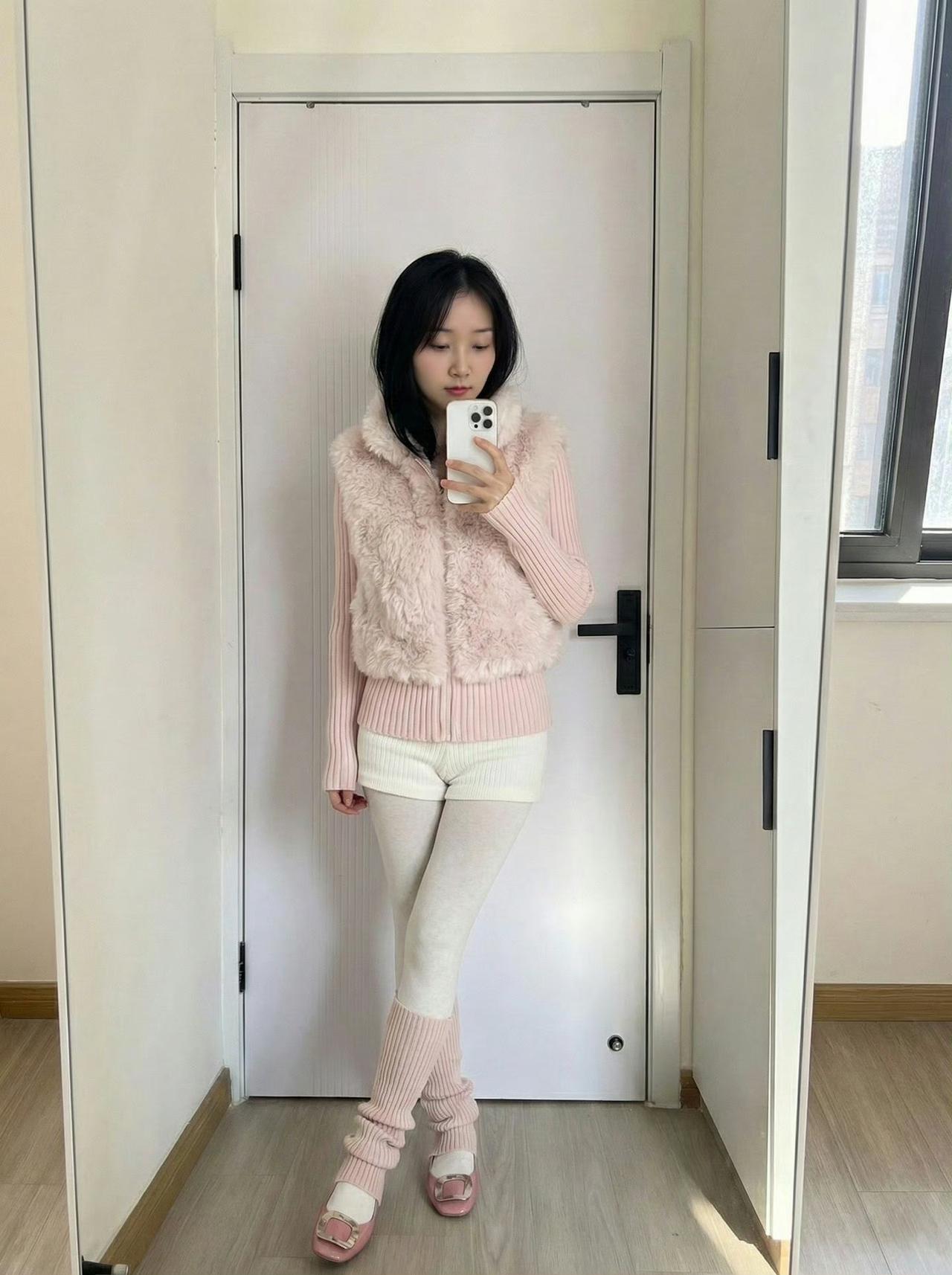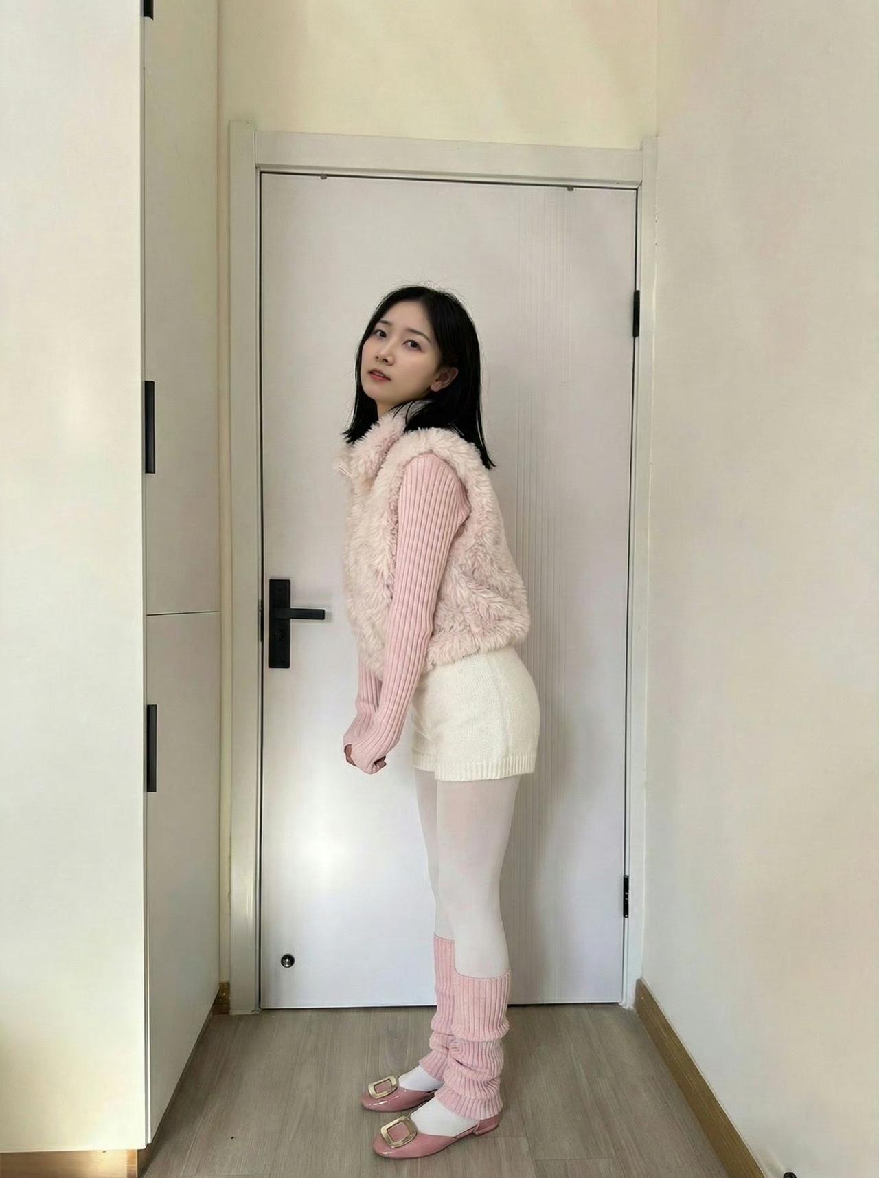 这套穿搭是软萌温柔的粉白搭配,把毛绒质感与甜美元素融合。粉色毛绒马甲+同色系针织衫自带软萌氛围,短款内搭注轻熟感;全粉白配色显柔和统一。 搭配拖鞋强化甜软质感,和简约居家环境的柔和氛围高度契合。充分展现穿着者软萌温柔的魅力。温柔粉色穿搭 浅粉色系穿搭