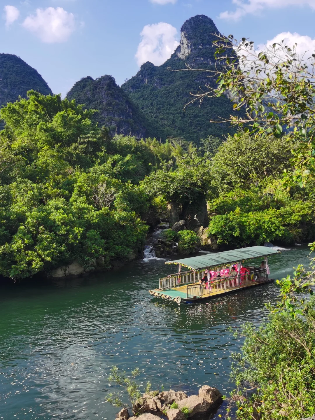 乘坐竹筏靠近瀑布是一定要去的,你能更清晰的聆听水流装机岩石的声音,扑面而来的水雾让你仿佛置身在这份清凉里。