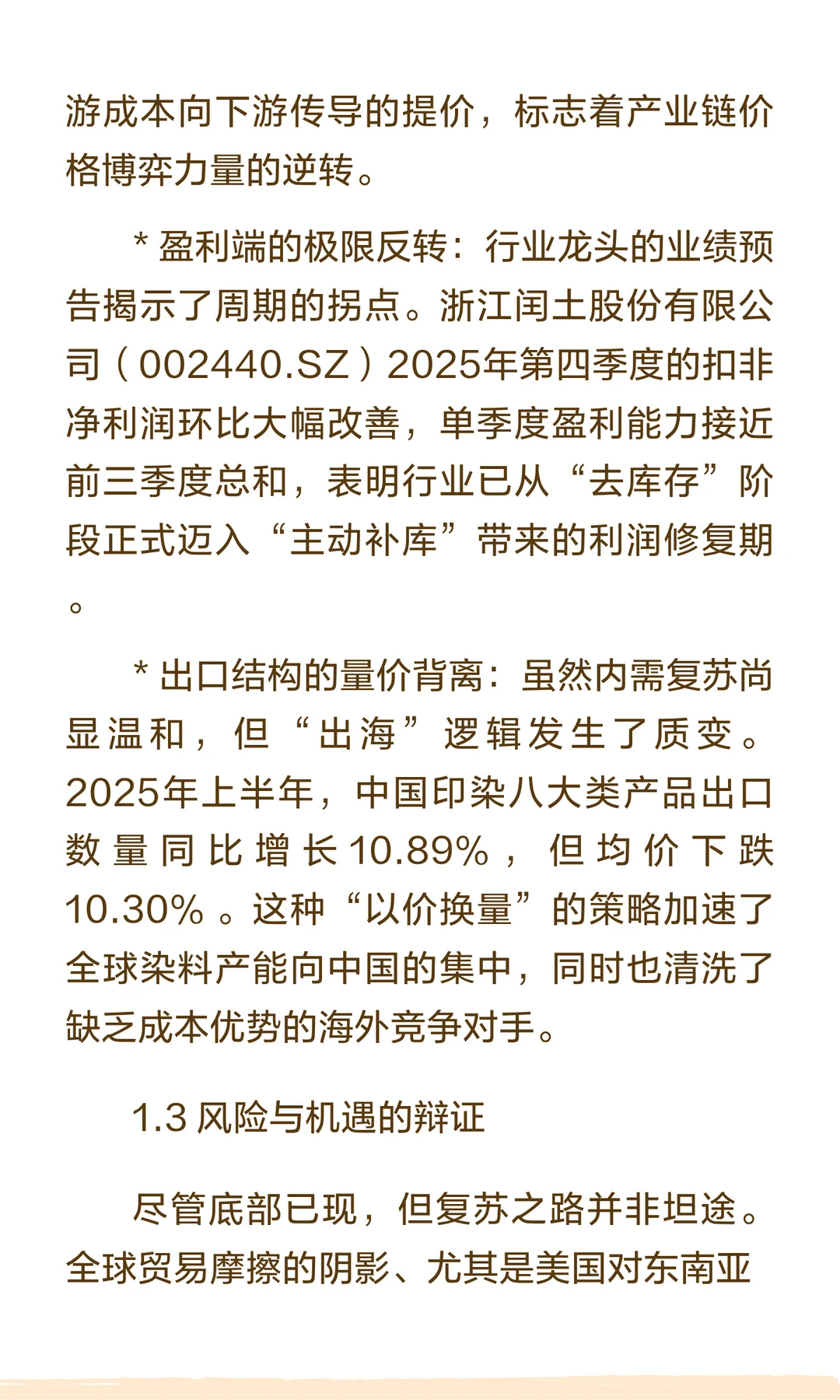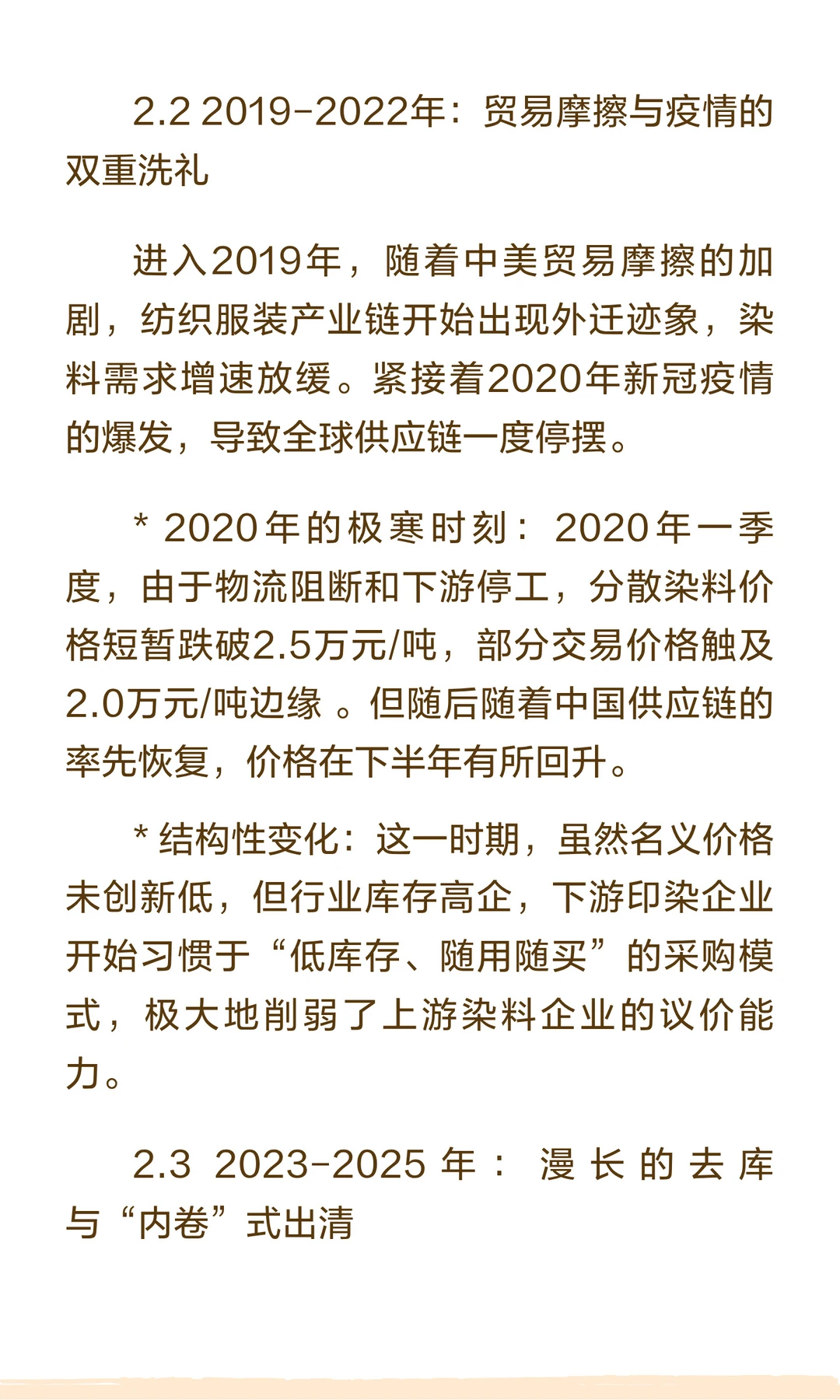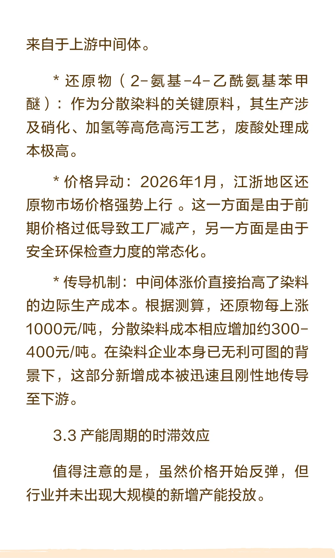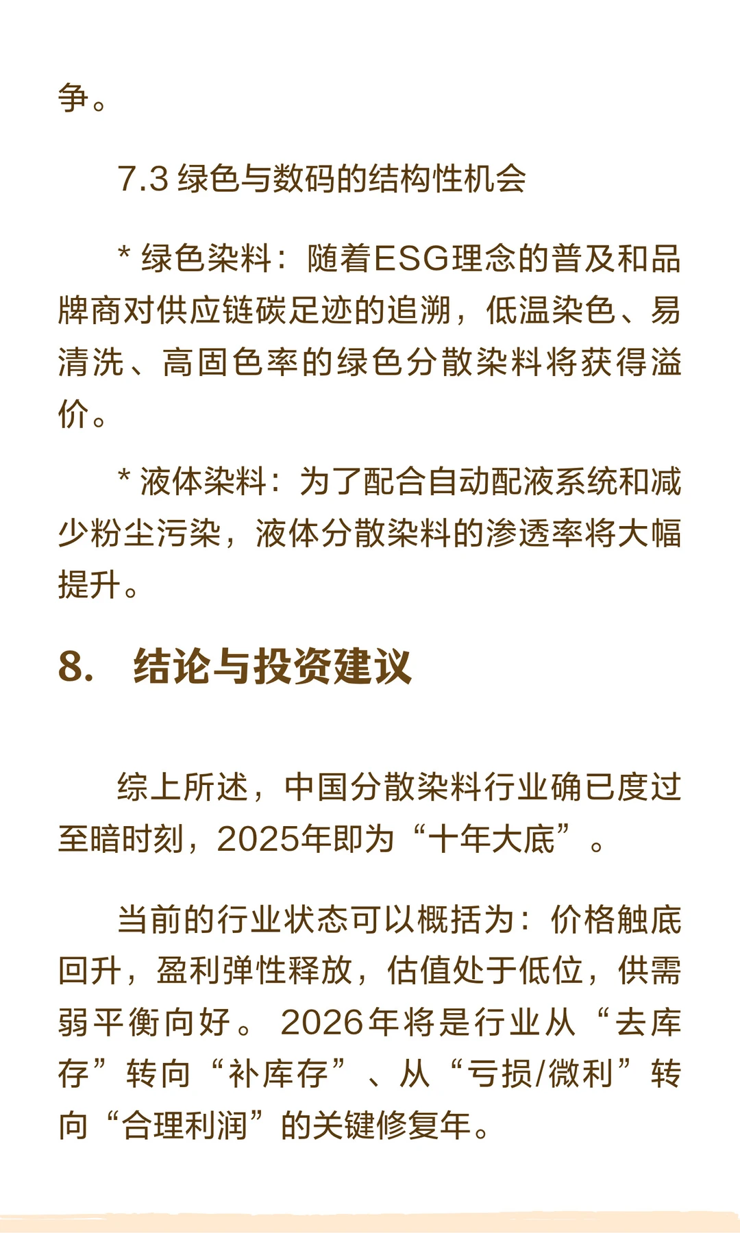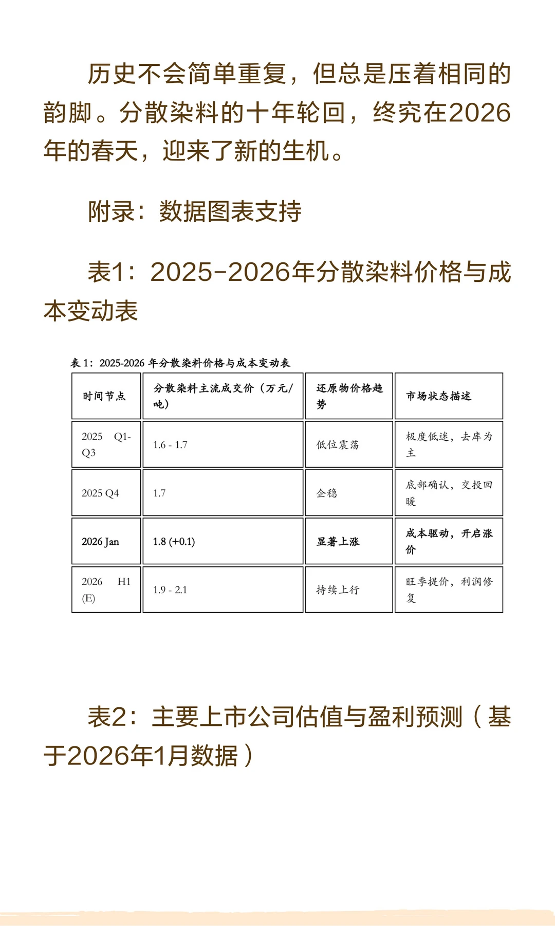 经过对中国分散染料市场长达十年的价格波动、产能演变及上下游供需关系的详尽梳理,结合2025年全年及2026年初的最新高频数据,本研究认为:中国分散染料行业已在2025年第四季度完成了“十年大底”的筑底过程,并于2026年1月开启了基于成本推动与库存回补双重逻辑的右侧修复行情。