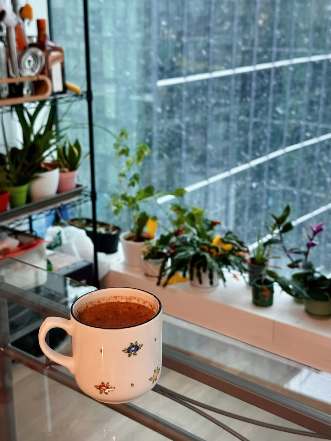 看着外面纷纷扬扬的大雪,在温暖的屋子里啜饮一杯浓浓的热巧克力。在这个特别冷,雪特别多的冬天,你们一定要体验一下!