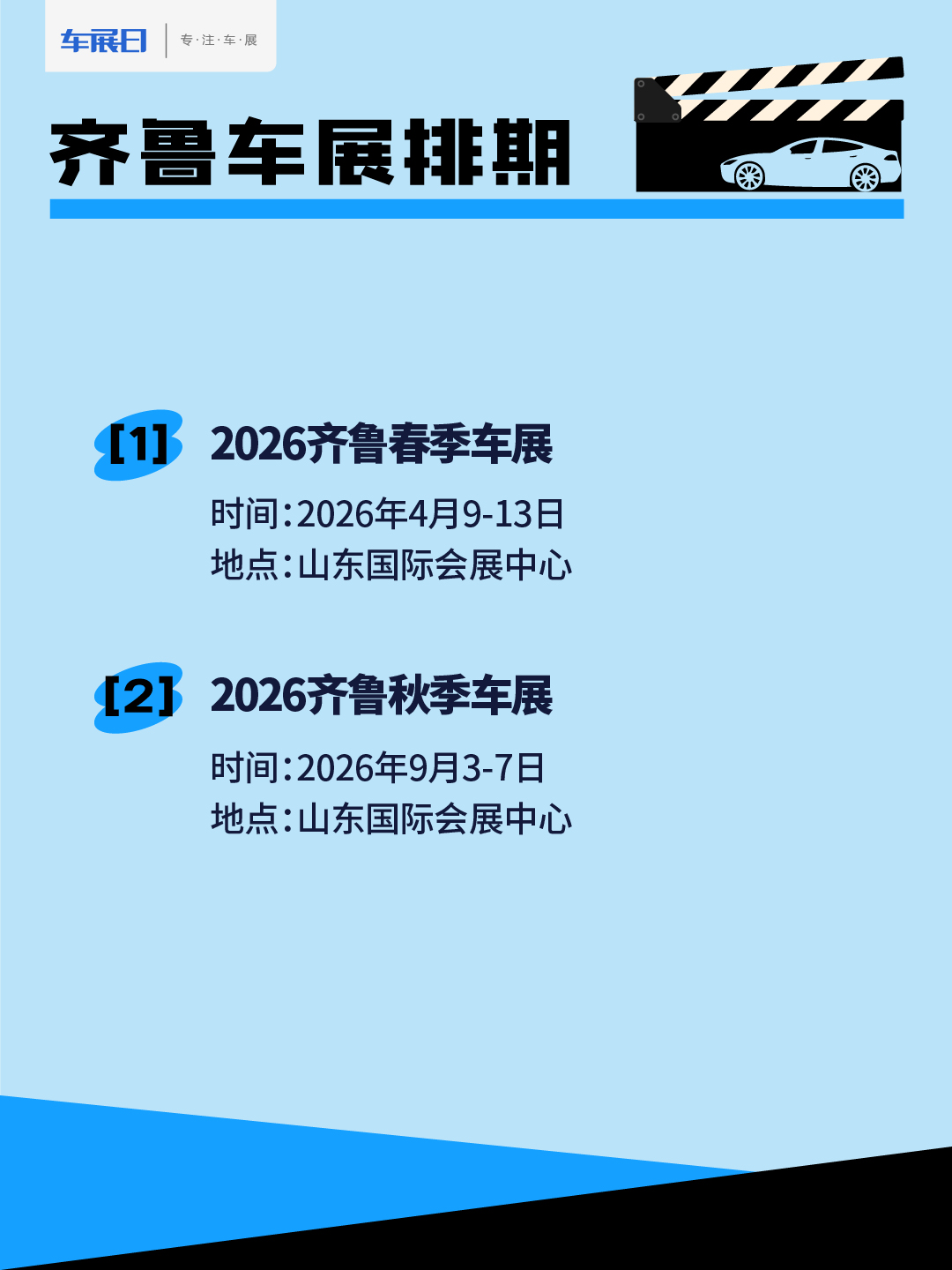 2026年济南将举办两场齐鲁车展,举办地点都在山东国际会展中心,其中齐鲁春季车展将再4月9日至13日举办,齐鲁秋季车展将在9月3日至7日举办。更多车展精彩尽在车展日!
