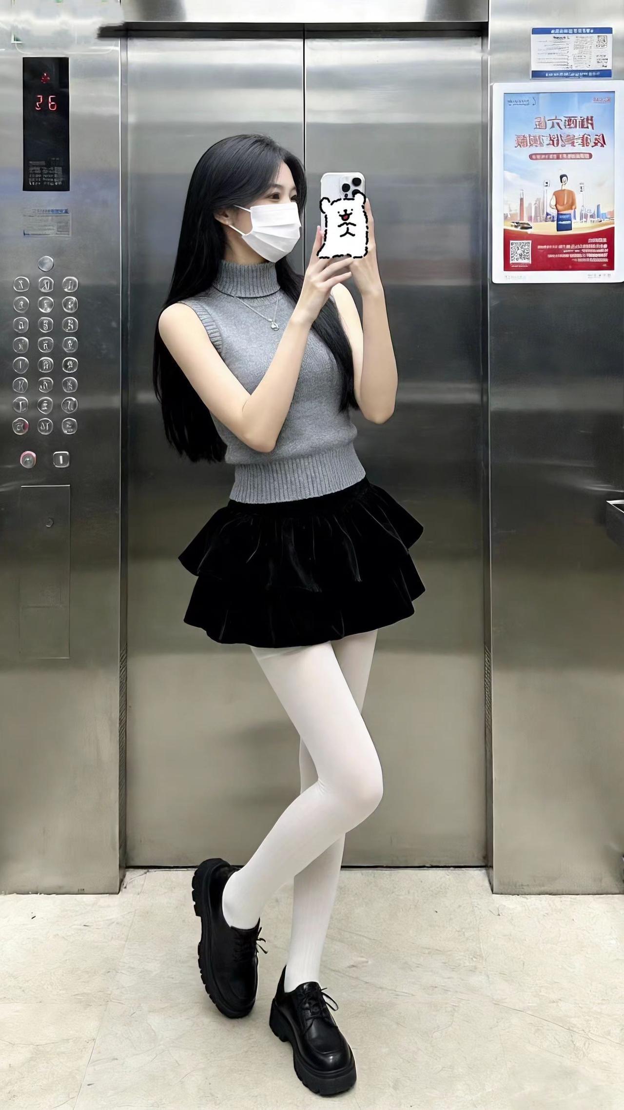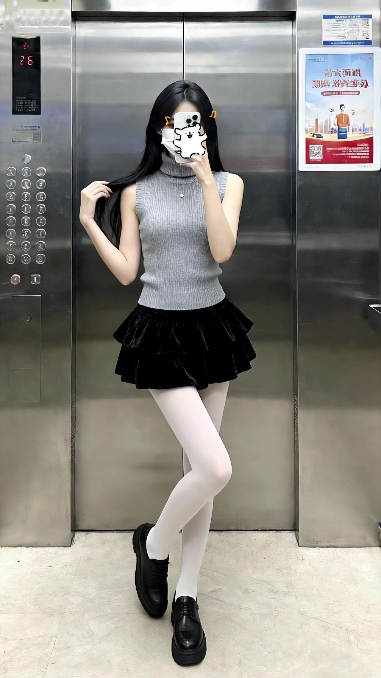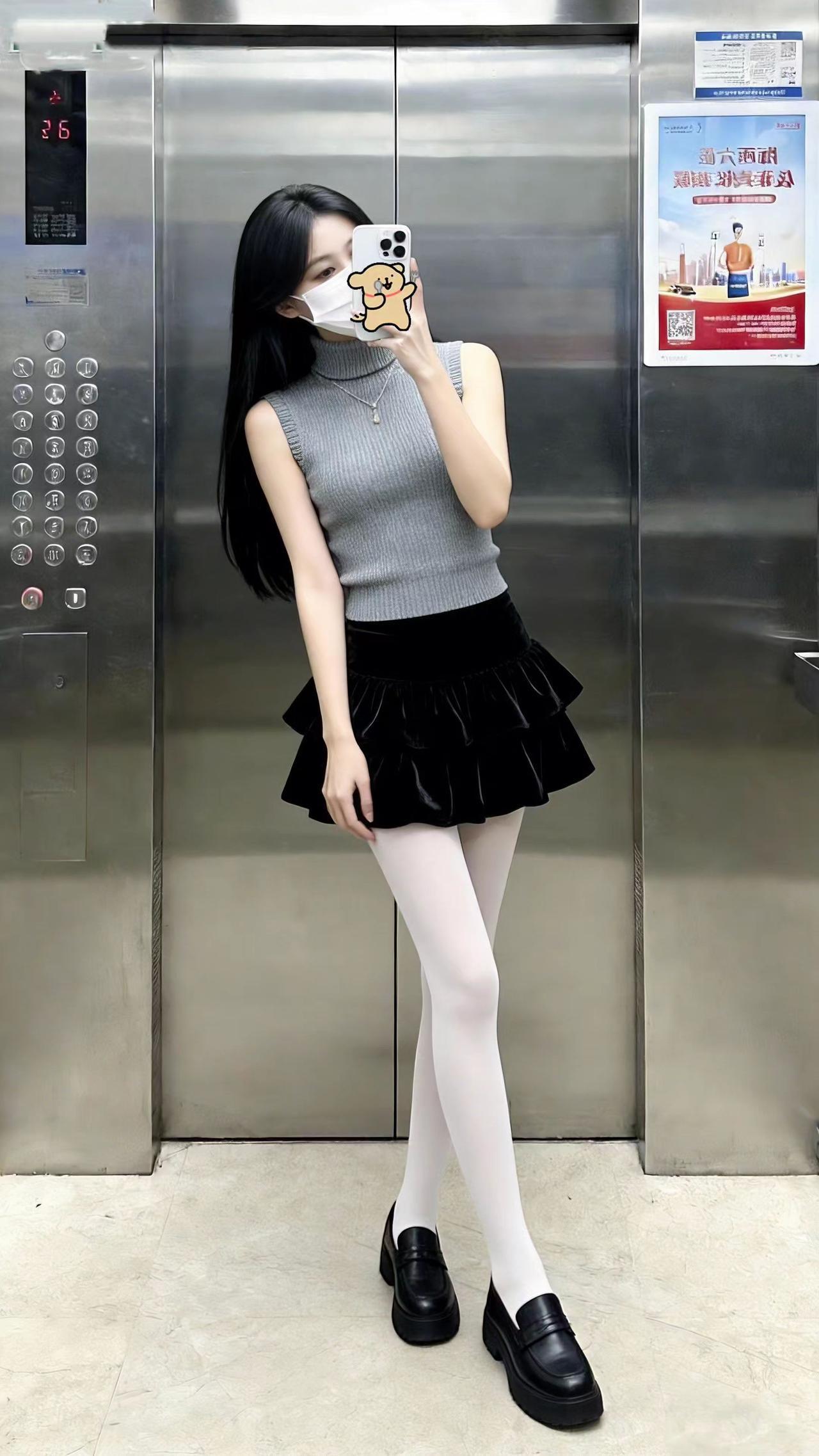 美得不像话,像画。到此一游,证据在此。电梯拍照 一起野个好身材 短裙穿搭 对镜自