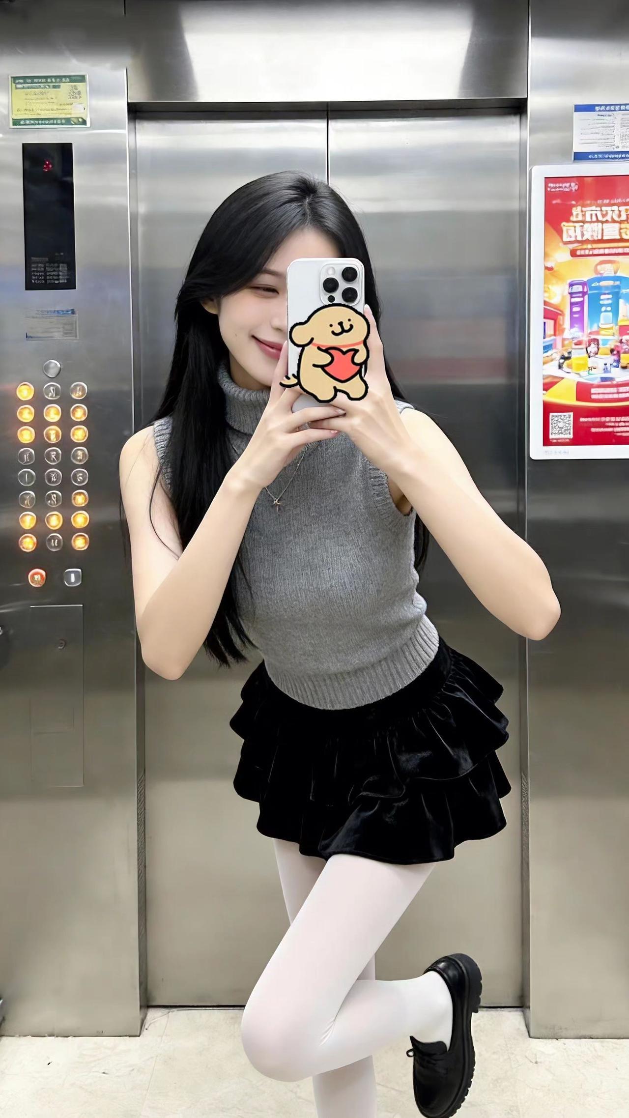 美得不像话,像画。到此一游,证据在此。电梯拍照 一起野个好身材 短裙穿搭 对镜自拍