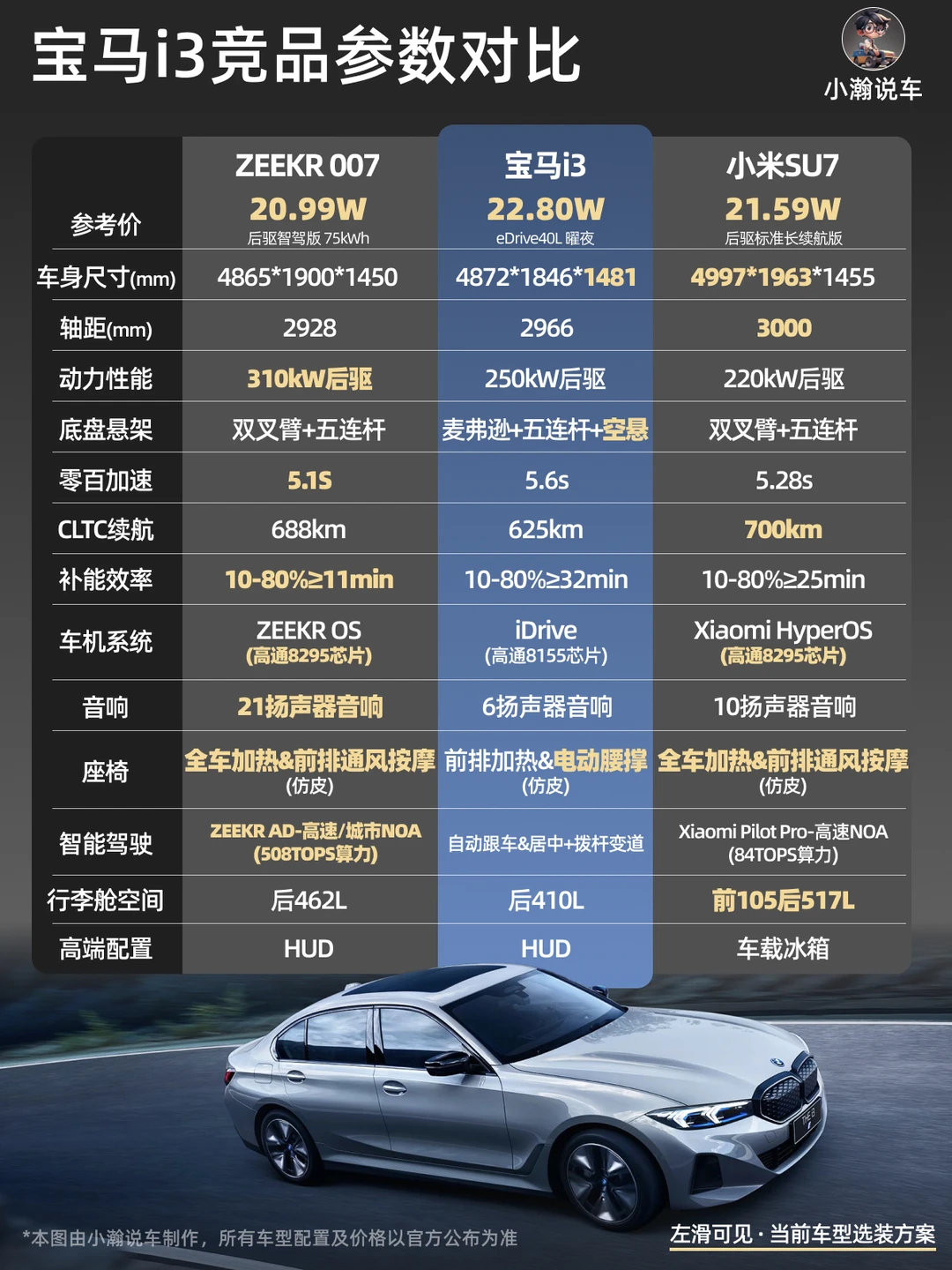 如果单看配置表的纸上实力,无论是核心三电、智能化水平还是舒适化配置,宝马i3肯定竞争不过同级国产品牌主打操控的轿车。但出色的底盘调校、全系标配的空悬、以及蓝天白云车标的品牌价值,相信还是会吸引一部分用户购买。重点就要看终端经销商后续价格能给到多少了,毕竟当年25款的入门版i3曾经下探到过16万级,只要价格合适,补充了更多豪华配置的宝马i3在这个级别仍然会有一席之地。