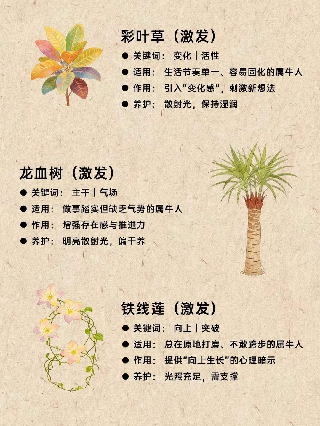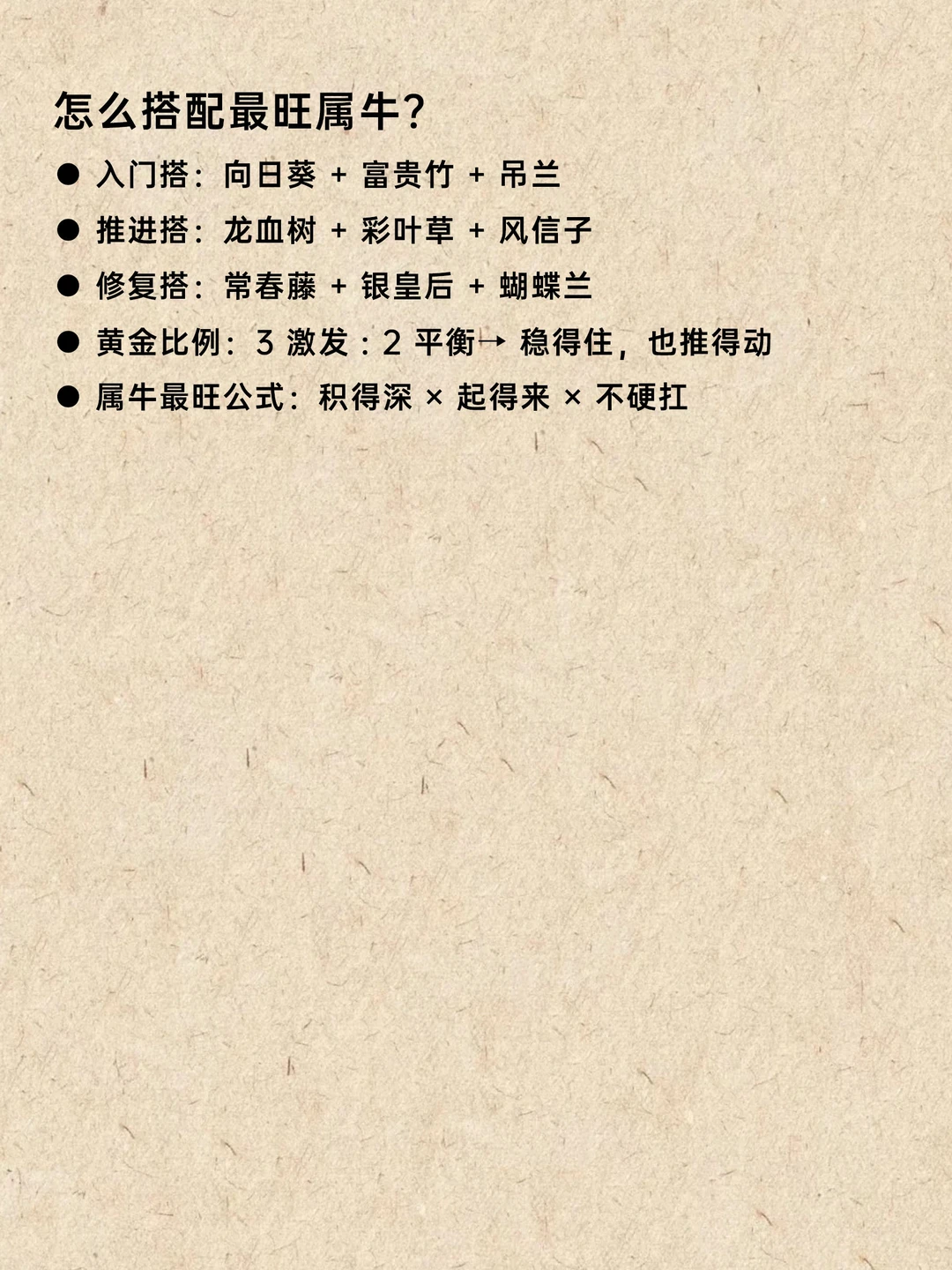 🐂属牛之人:天生自带「耐力型王者」体质——踏实、稳重、能扛事、能长期输出。 别人眼里的你:靠谱、勤恳、越难越不退;但只有属牛的人自己最清楚——你不是不累,只是习惯咬牙;你不是没情绪,只是习惯往心里咽。 比起“更拼”,你真正需要的是: 🔹 少消耗、多回能 🔹 不再一个人硬撑 🔹 让好运走得进来,而不是全靠自己顶 🔹 在稳中生势,而不是慢慢耗空 属牛五行偏「土性厚重 + 木势内敛」 优势是:稳、韧、能长期积累 隐患是:气机滞、能量走得慢、容易憋、容易疲 选对植物,可以帮你: ✨ 活络气场,让机会“动”起来 ✨ 让努力更容易被看见 ✨ 化解内耗与闷气 ✨ 把“硬扛”变成“稳赢” ✨ 让贵人更愿意靠近你 本次按 「激发」与「平衡」 两类,整理 10 种属牛的一生旺运天选植物——草药女巫的东方能量私藏清单,建议直接收藏🌿 植物   牛    神秘学      星座    自然疗法   疗愈   植物疗愈       神奇植物  生肖运势