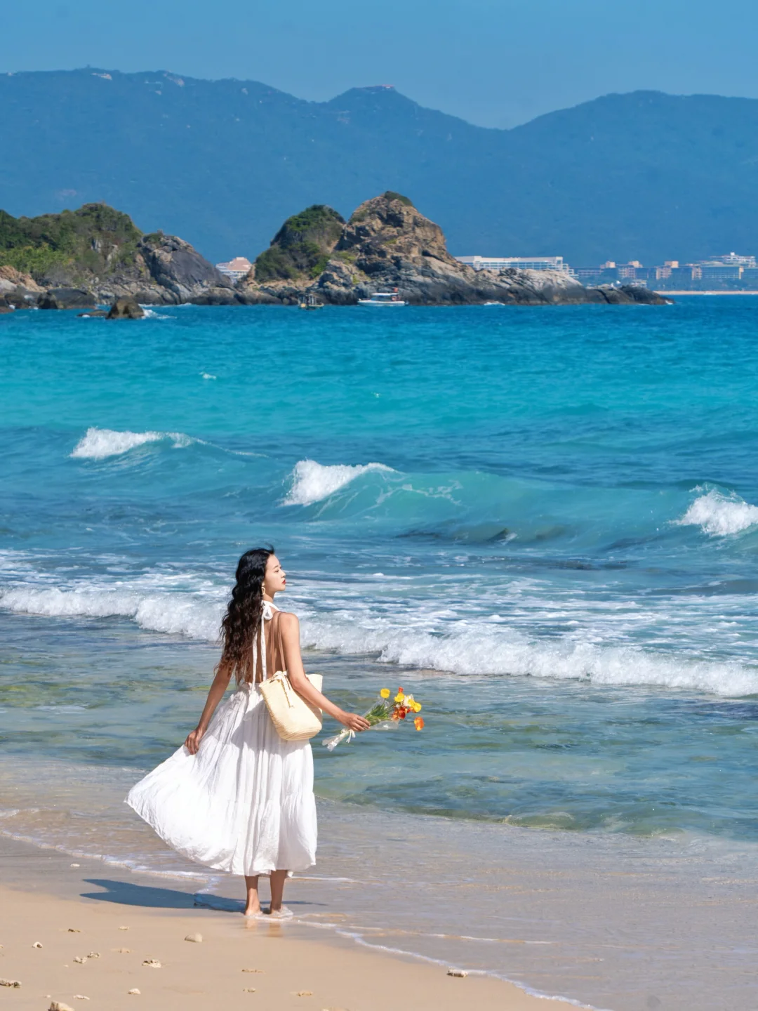 这里的下午,海水是通透的蓝绿色,沙质细软如棉,比亚龙湾小众,比大东海安静,退潮时还能赶海,记得穿防滑鞋